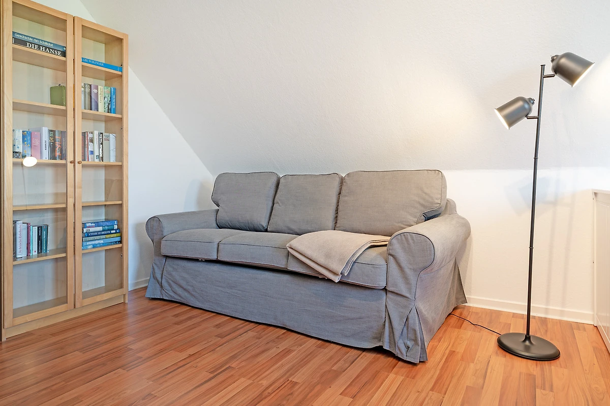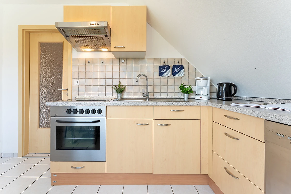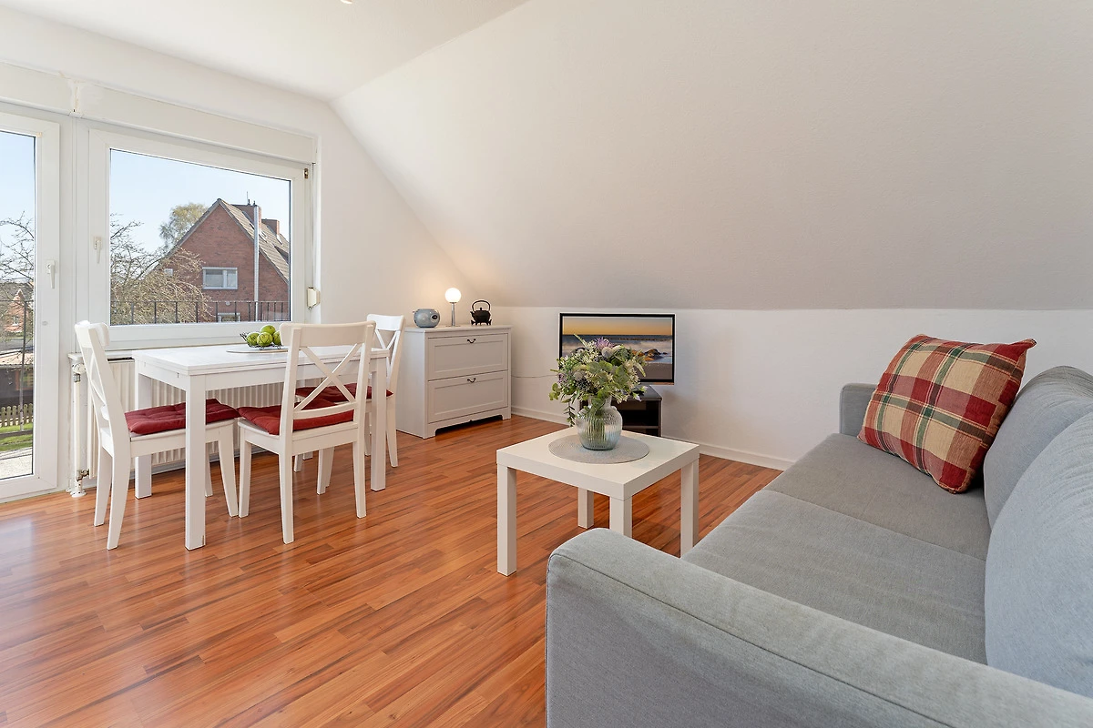 Herzlich willkommen! Das gemütliche Wohn- und Esszimmer ist mit einem Esstisch für 4 Personen, einem bequemen Sofa und TV ausgestattet. Von hier aus gelangen Sie auf den Balkon, der morgens ein Frühstück in der Sonne möglich macht. Die offene Küche hat neben einer Spülmaschine eine gute Ausstattung, damit Sie sich prima selbst versorgen können. Im separaten Schlafzimmer verspricht ein Doppelbett traumhafte Nächte. In einem weiteren Wohn- und Schlafraum steht ein Schlafsofa. Das hell geflieste Duschbad hat ein Dachfenster und lässt Sie gut in den neuen Tag starten.