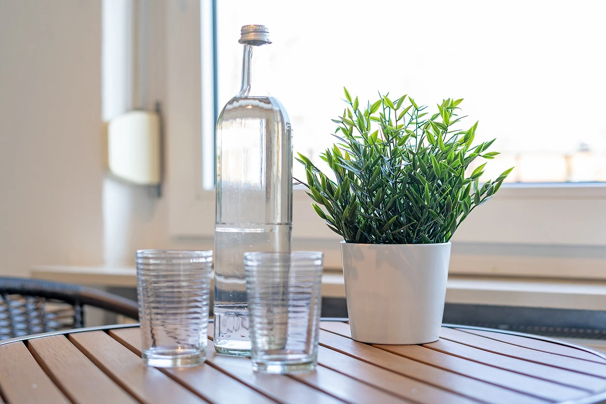 Die Wohnung ist schön hell, aber bevor WIR die Fenster nicht geputzt hatten,konnten wir kaum durchschauen. Das Glas in der Küchentür klapperte, sodass wir erstmal Papier hineinstecken mussten. Es war ausser einem Staubsauger kein Material zum Saubermachen da. Es ist wirklich sehr bedauerlich, weil uns die Wohnung ansonsten vom Schnitt und der Helligkeit gefallen hat. Einrichtung sehr schlicht gehalten, nur das Allernötigste.