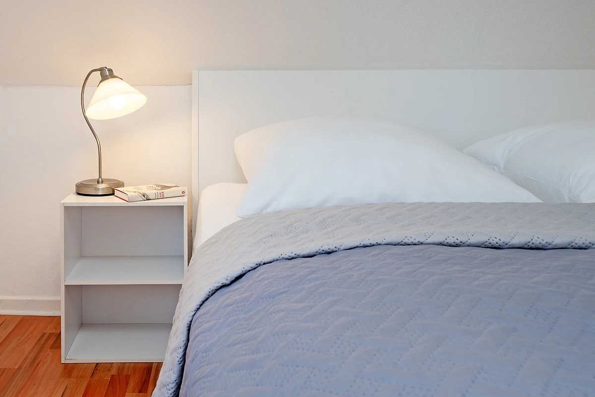 Schlafzimmer: 1 Doppelbett, Kleiderschrank, Verdunkelungsmöglichkeit: Jalousie