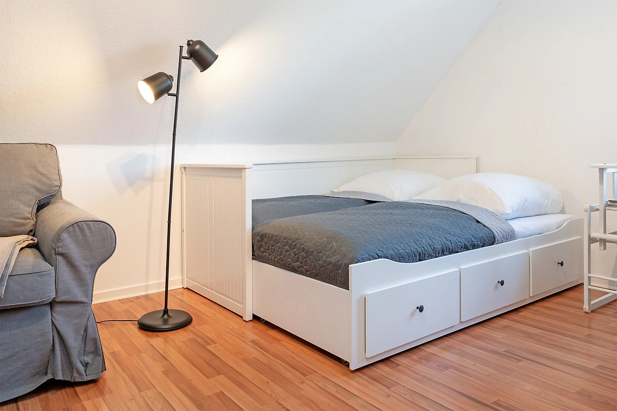 In dem Appartementhaus gibt es noch eine zweite Ferienwohnung. Das Grundstück ist knapp 1.000 m² gross und für beide Parteien der Ferienwohnungen zugängig. Für die Dachgeschosswohnung gibt es im Garten zusätzlich einen eigenen Terrassenbereich. Das grosse Wiesengrundstück erlaubt ausreichend Platz für jede Mietpartei.