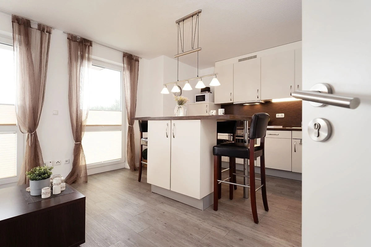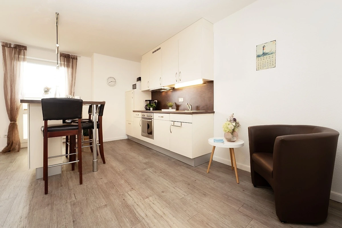 Edel und schick präsentiert sich die Ferienwohnung Ostseebrise. Im hellen Wohnraum erwartet Sie ein Flachbild-TV mit Sat-Anlage, DVD-Player, Radio und CD-Player. Ein komfortables Schlafsofa lässt sich bei Bedarf zum Bett (180 cm breit) umwandeln. Die offene Küche ist gut ausgestattet mit allen Elektrogeräten und Utensilien, die Sie beim entspannten Kochen brauchen. Am Küchentresen finden vier Personen auf gemütlichen Barhockern Platz. Vom möblierten Balkon können Sie den Meerblick und die gute Seeluft geniessen. Das separate Schlafzimmer mit Doppelbett verspricht traumhafte Nächte. Das moderne, tageslichthelle Duschbad verfügt über einen Handtuchheizkörper sowie Fussbodenheizung.