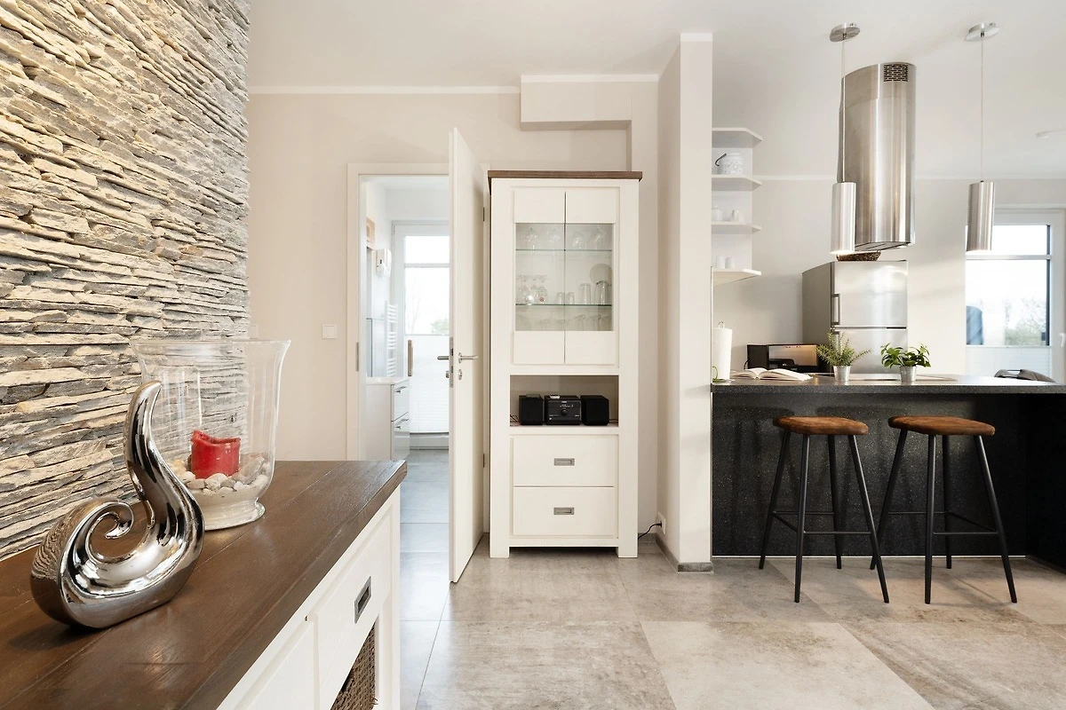 In bester Lage von Fehmarnsund: Dieses exklusive 4-Zimmer-Feriendomizil im 1. Stock mit Balkon hat eine Grösse von ca. 100 m² und bietet Platz für bis zu 6 Personen. Mit einer eigenen Sauna, einem Weinkühlschrank, einem Ofen im Wohnbereich sowie traumhaften Meerblick bietet diese moderne Wohnung Urlaub der Extraklasse.