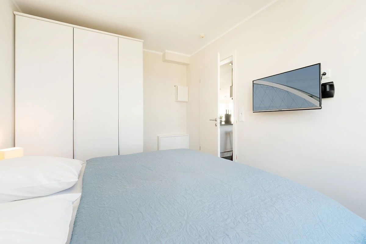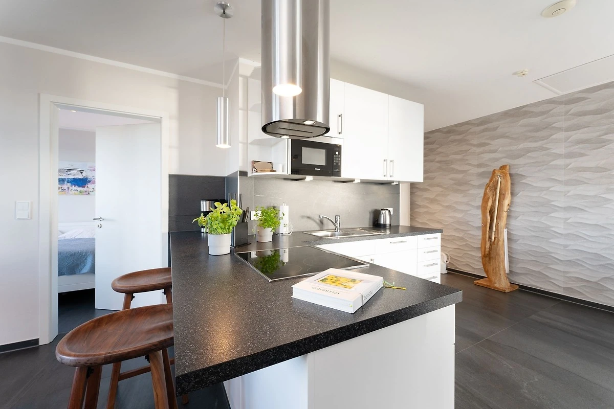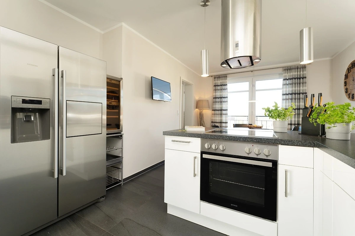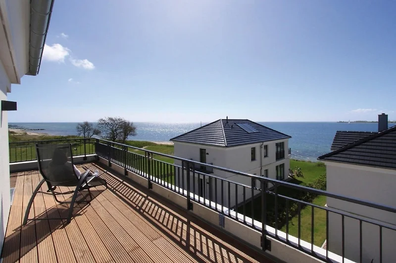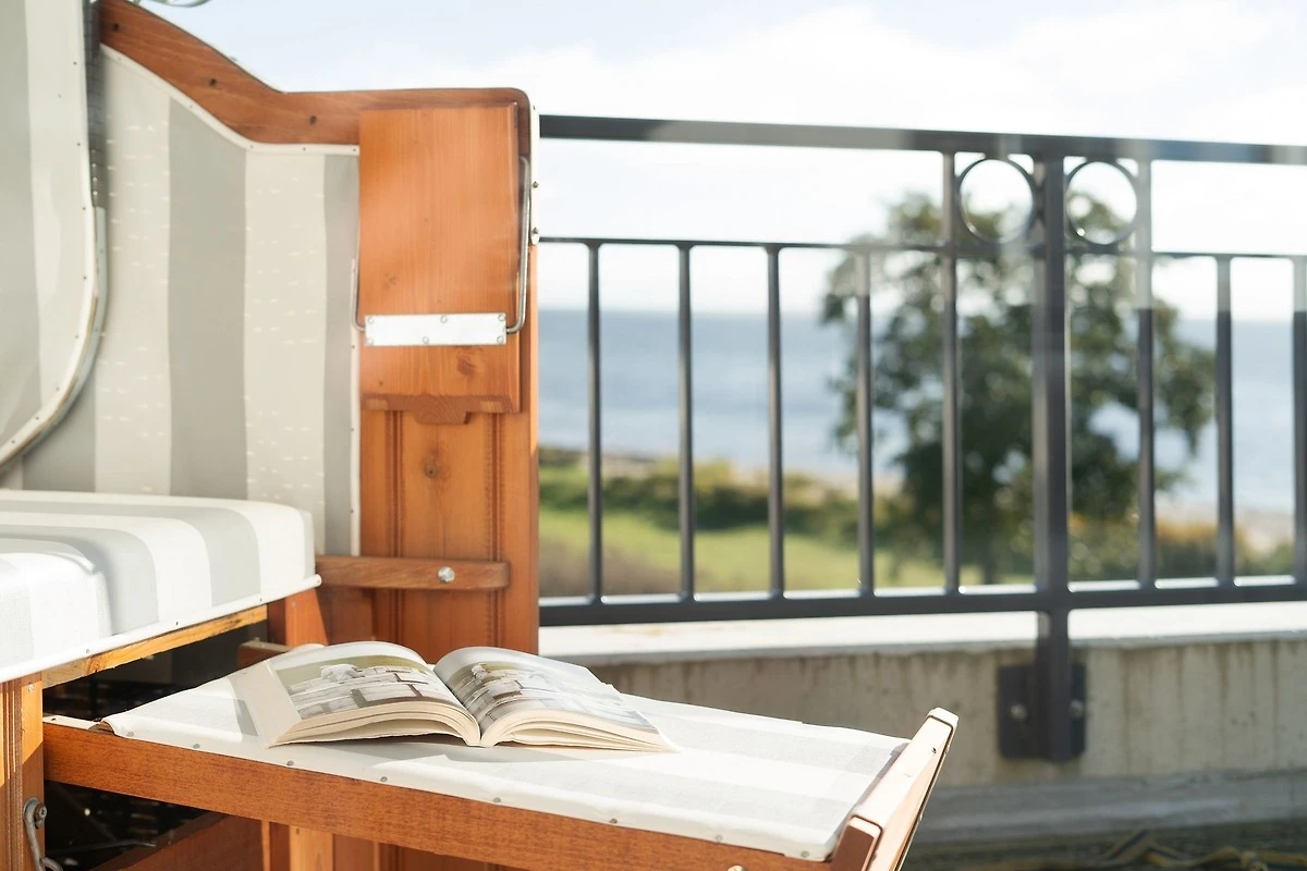 Nur rund 30 Meter vom Strand entfernt befindet sich diese traumhafte Wohnung. Lichtdurchflutete Fenster mit Blick auf die Ostsee und eine moderne, offene und sehr gut ausgestattete Küche mit angrenzendem Ess- und Wohnbereich laden Sie zum Entspannen ein. Für die Nacht stehen Ihnen zwei Schlafzimmer mit jeweils einem Doppelbetten und einem TV-Gerät zur Verfügung. Das hochwertige tageslichthelle Badezimmer punktet mit einer bodengleichen Dusche. Zusätzlich gibt es ein Gäste-WC. Die Wohnung ist komplett gefliest und mit einer Fussbodenheizung ausgestattet. Das Highlight der Wohnung ist sicher die ca. 35 m² grosse Dachterrasse mit Panorama-Meerblick und eigenem Strandkorb. Von hier können Sie sowohl den Sonnenaufgang als auch den Sonnenuntergang beobachten. Sonne pur - den ganzen Tag!
