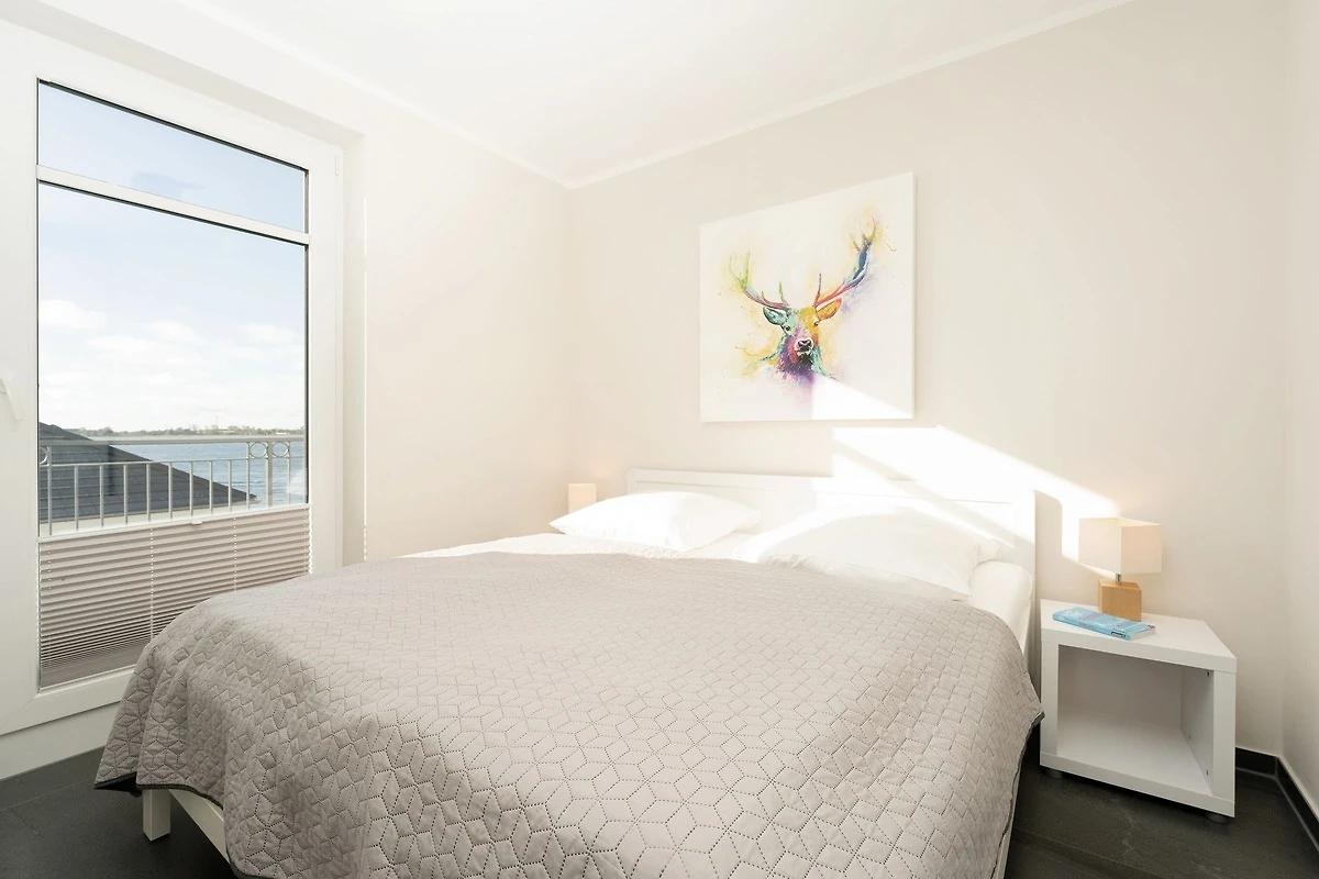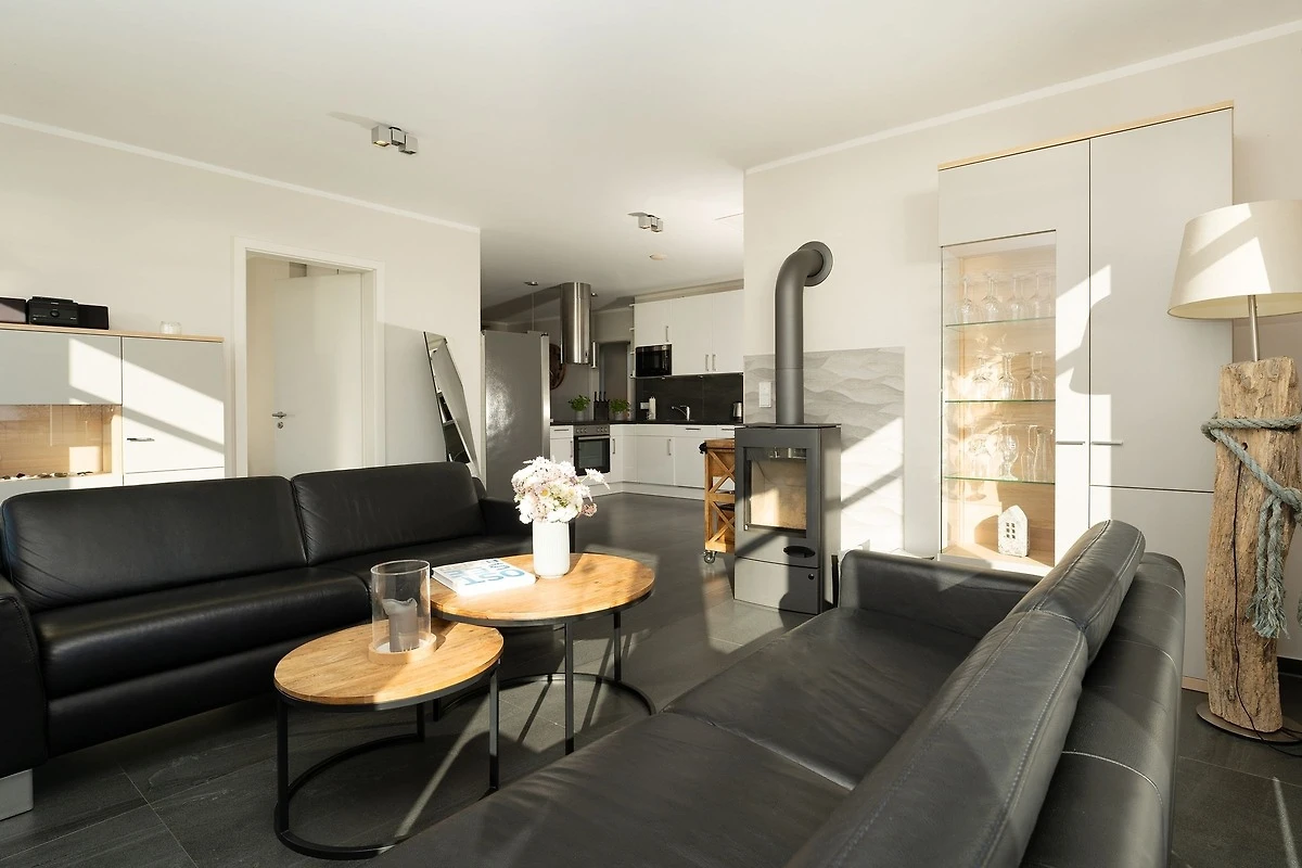 In bester Lage von Fehmarnsund: Exklusive 4-Zimmer-Ferienwohnung im 2. Stock mit Balkon und einer Grösse von ca. 100 m² für bis zu 4 Personen. Mit einer eigenen Sauna, einem Weinkühlschrank, einem Ofen im Wohnbereich sowie traumhaften Meerblick bietet diese moderne Wohnung Urlaub der Extraklasse.