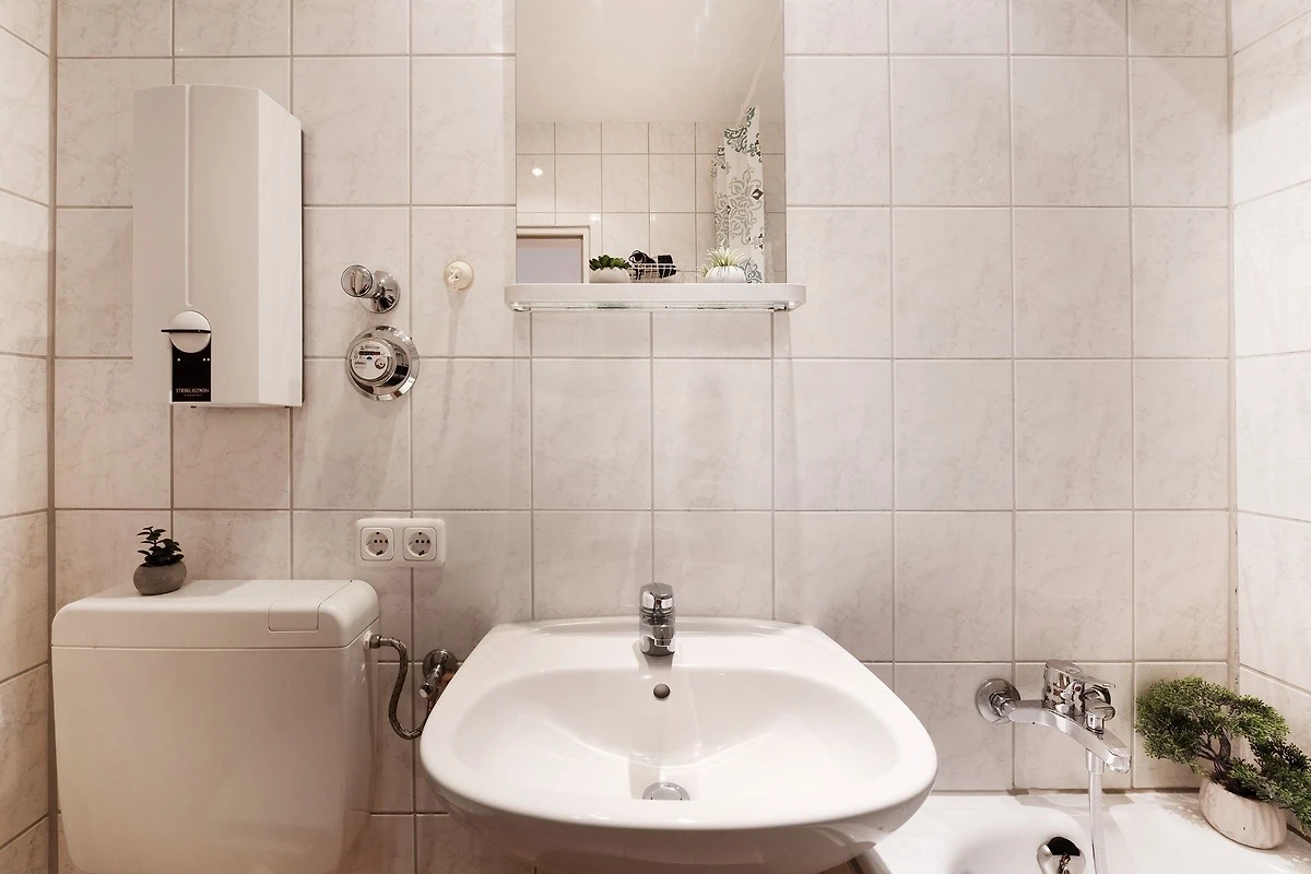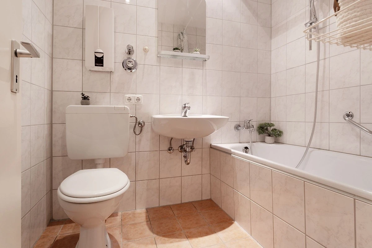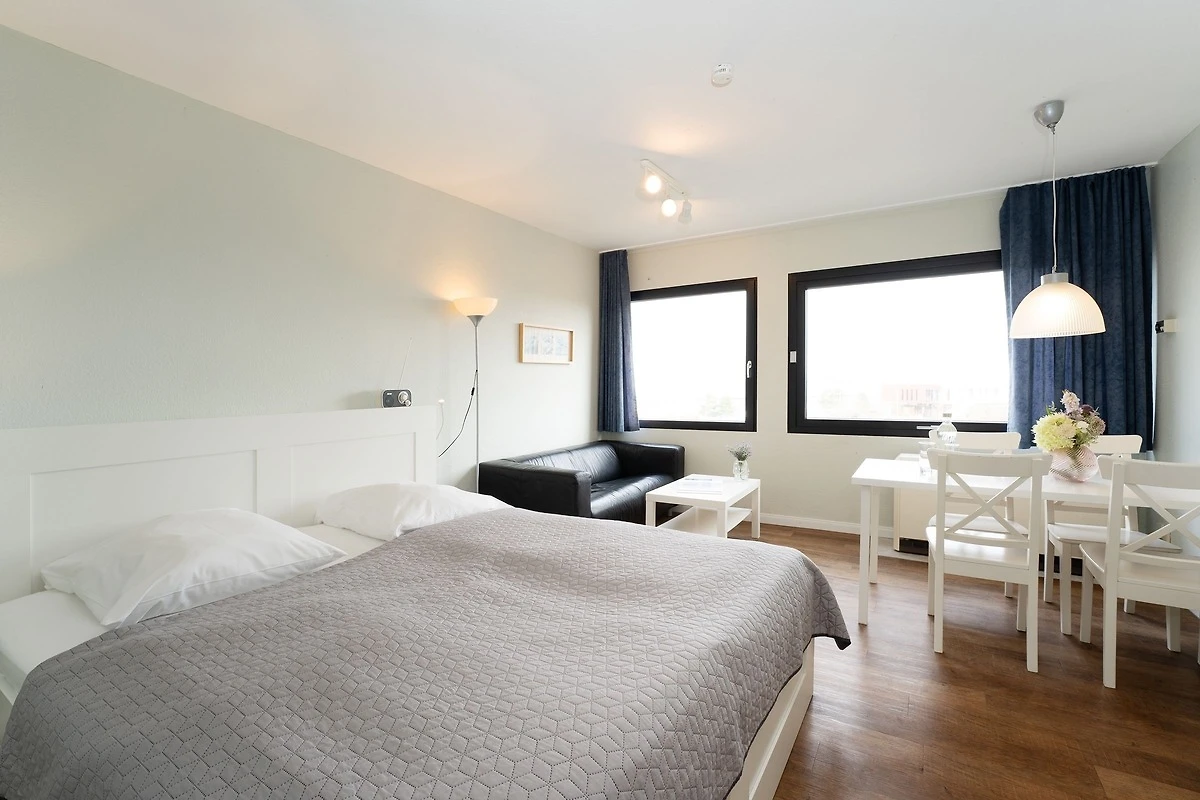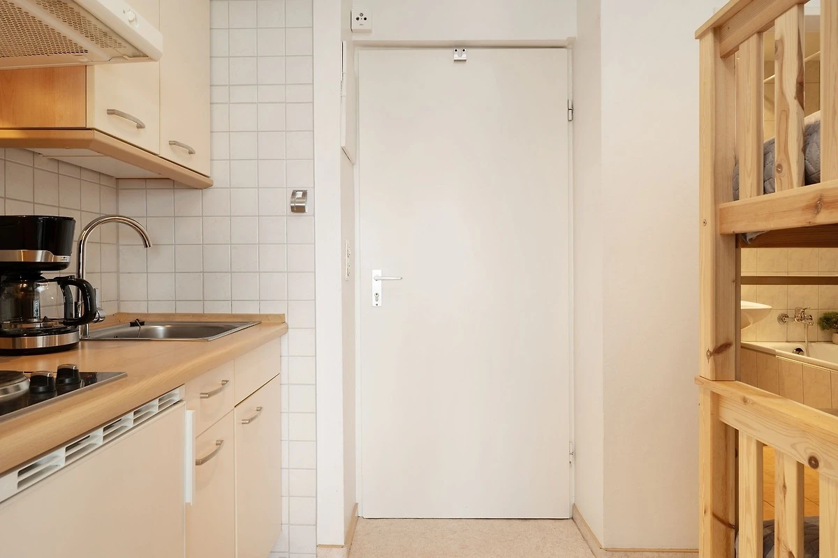Herzlich Willkommen im Appartement Heimathafen! Hier können Sie wunderbar die Seele baumeln lassen. Die Ferienwohnung besticht durch ihre wunderbare Lage - umgeben von Wasser. Im hellen Wohn-/Schlafbereich befindet sich ein gemütliches kleines Sofa, ein schöner Esstisch sowie ein bequemes Doppelbett (180x200 cm) zum Träumen. Durch die grossen Fenster haben Sie praktisch von überall aus einen tollen Meerblick. Öffnen Sie die Fenster, um dazu noch die frische Meeresluft zu atmen und um den Möwen zu lauschen. In der kleinen, offenen Kochnische mit Herd, Kühlschrank, Kaffeemaschine und Wasserkocher können Sie sich gut selbst verpflegen. Für Kinder steht separat, zwischen dem Küchenbereich und dem innenliegen Badezimmer mit Badewanne mit Duschfunktion, ein Etagenbett zur Verfügung. Fussläufig befinden sich kleine Läden für die Brötchen am Morgen, ein Waschsalon und Lokale, um bei Tee und Kuchen den Tag zu geniessen, den Sonnenuntergang an der Uferpromenade und die letzten Kiter zu beobachten.