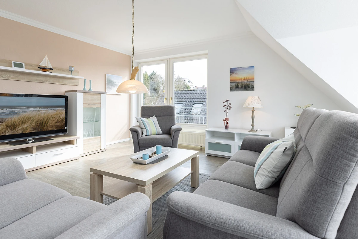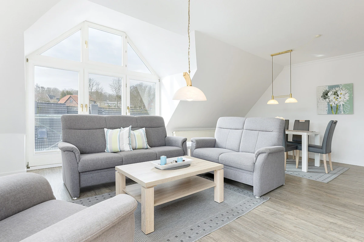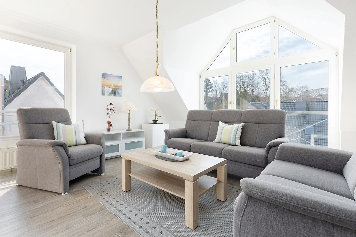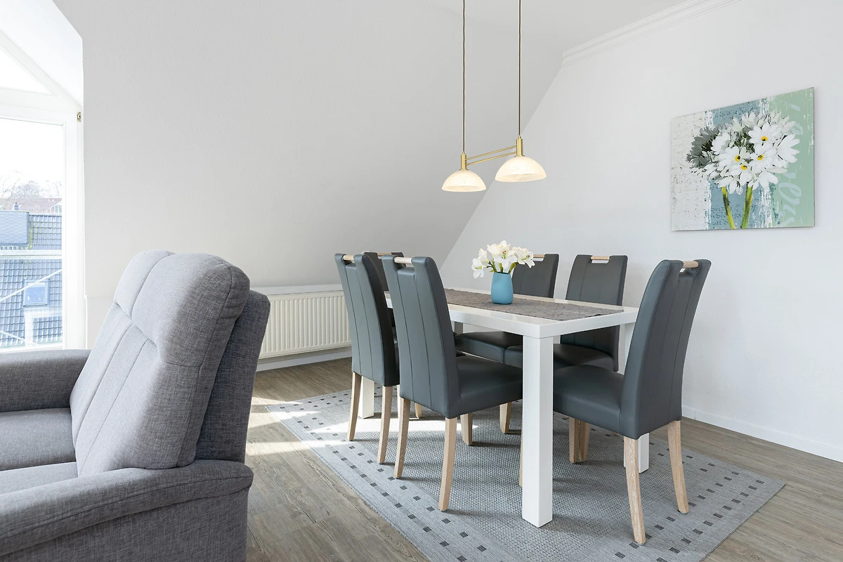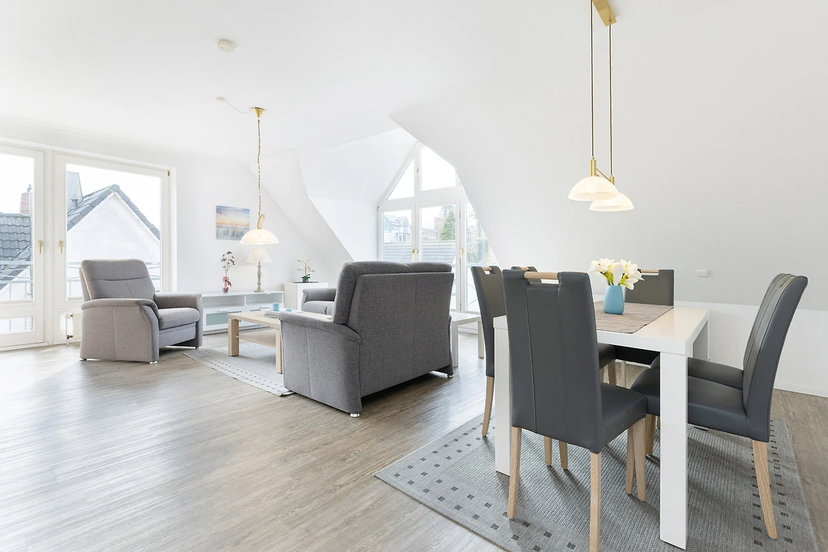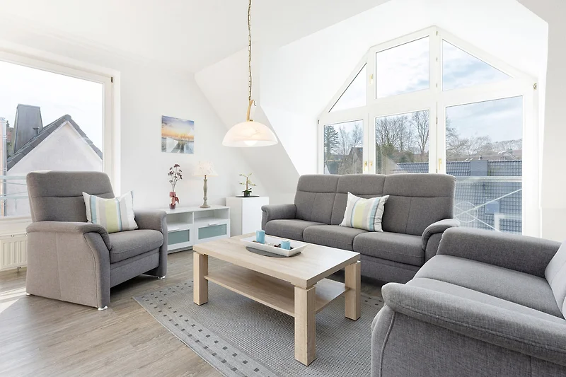 Helle, ca. 85 m² grosse 3-Zimmer-Ferienwohnung für bis zu 4 Personen im 2. Stock mit Balkon in ruhiger Lage und Nähe zum Laboer Hafen.