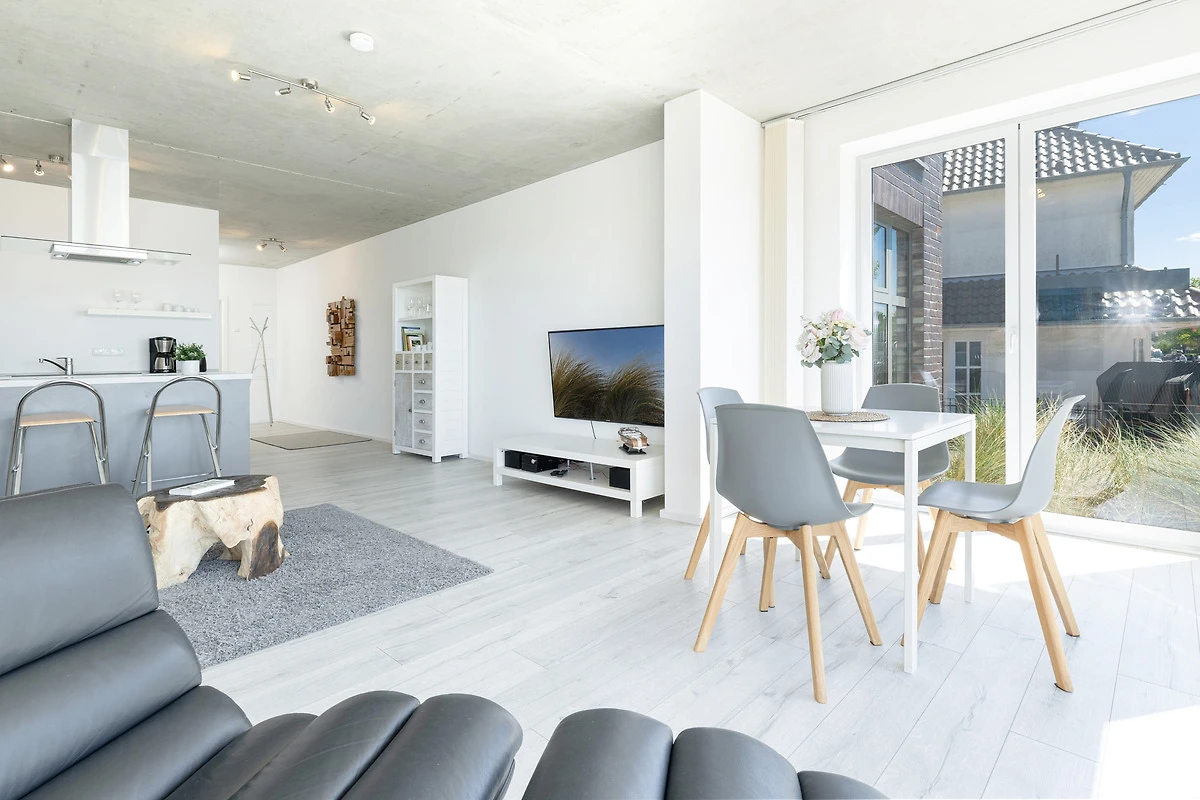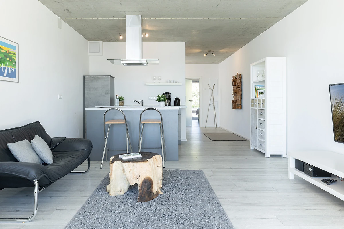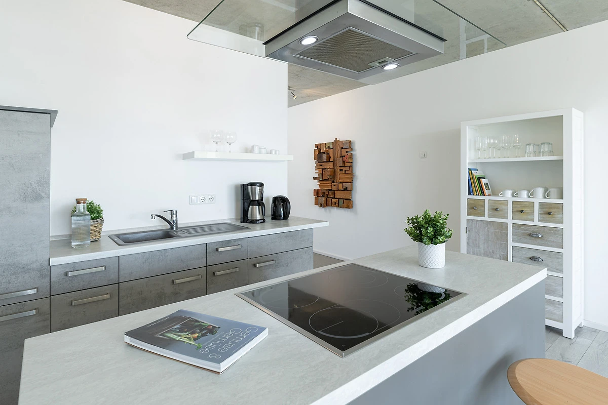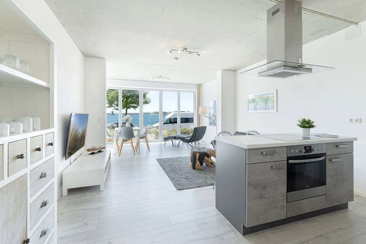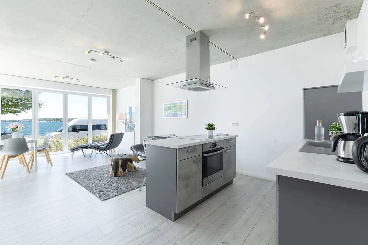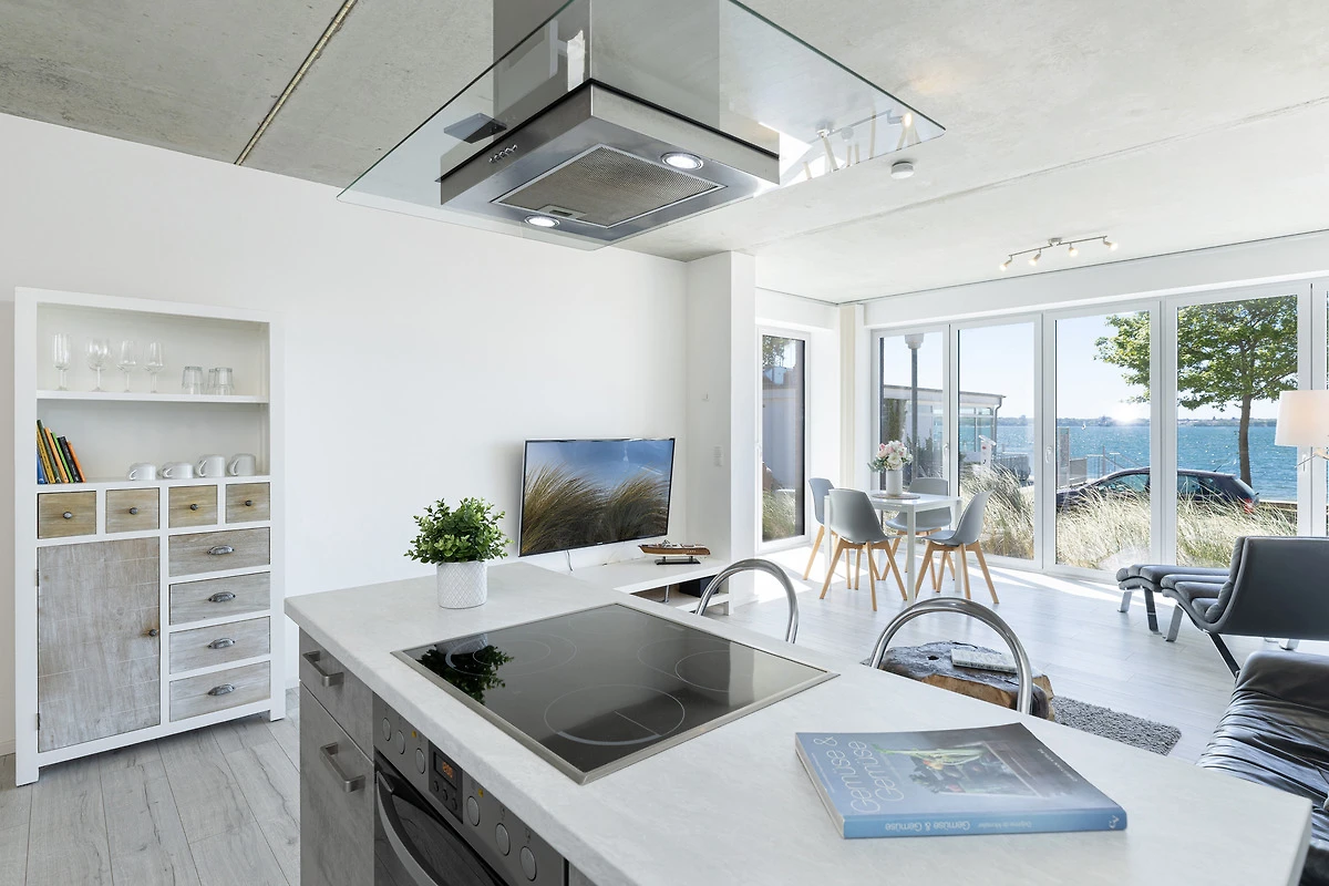 Urlaub der Extraklasse mit beeindruckendem Blick aufs Wasser. Jeder einzelne Raum besticht durch seine grosszügige Aufteilung und seine verwendeten Materialien. Der kombinierte Wohnraum ist hochwertig und modern eingerichtet und verfügt über ein bequemes Sofa, Flachbildschirm-TV und eine extra Relax-Liege. Die bodentiefe Fensterfront lädt ganzjährig zum Öffnen und Verweilen ein. Die offene Wohnküche mit Kochinsel und Dunstabzug lässt keine Wünsche offen. Im separaten Schlafzimmer mit Boxspringbett werden Sie erholsame Nächte verbringen. Das komfortable, innenliegende Bad punktet mit einer grossen, begehbaren Dusche.