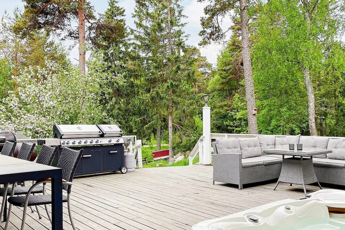 Lassen Sie sich dieses fantastische Ferienhaus nicht entgehen, das Sie das ganze Jahr beziehen können und das Platz für viele bietet. Dazu hat es einen geräumigen Whirlpool, eine Sauna mit Ruhebereich, einen Billardtisch und liegt auch noch in unschlagbarer Nähe von einem schönen Sandstrand. Der perfekte Ort, um das ganze Jahr über mit der Familie aktiv zu sein und gleichzeitig zu entspannen! Sie wohnen hier auf der wunderschönen Insel Väddö in Roslagen, im Stockholmer Schärengarten! Spüren Sie die Ruhe, lauschen Sie dem Gesang der Vögel und vielleicht dem Rauschen des Meeres! Baden Sie in netter Gesellschaft im warmen Whirlpool oder nehmen Sie an einem kühlen Abend ein heißes Bad in der Sauna mit Blick in den Garten. Hier ist die perfekte Unterkunft mit nicht nur guter Lage, sondern auch mit einer Reihe von Freizeitaktivitäten wie Billard, Darts, Wellness und Wasser im Angebot! Sie wohnen hier in einem großen Haus mit zwei Etagen. Auf der Eingangsebene befinden sich Küche und Wohnzimmer, die mit einem großen Esstisch zu einem Ganzen zusammengefasst sind. Großzügige Sitzgelegenheiten auf dem Sofa für alle Familienmitglieder vor dem großen Fernseher. Die Küche ist mit einem großen Kühl- und Gefrierschrank, einem Getränkekühlschrank und auch einer Waschmaschine ausgestattet. Von der Küche aus gibt es einen Ausgang auf eine kleine Veranda, die Sie zur Sauna mit Ruhebereich führt, wo Sie entspannen und den Stress loslassen können. Außerdem gibt es im Eingangsgeschoss zwei gemütliche Schlafzimmer mit jeweils einem Doppelbett und ein Badezimmer mit Toilette und Waschbecken. Im Obergeschoss finden Sie ein Familienzimmer mit Billardzimmer, Darts, Stereoanlage und Playstation. Perfekt für einen gemeinsamen Spieleabend! Von hier aus gelangen Sie in ein großes Badezimmer mit Toilette, Waschbecken und Dusche. Im Obergeschoss befinden sich zwei Schlafbereiche ohne Fenster. In dem einen Schlafzimmer gibt es ein Etagenbett und ein Einzelbett. Im anderen Raum, der eher als Schlafsaal bezeichnet werden kann, können die Betten mit Vorhängen, die von der Decke hängen, abgeschirmt werden. Es gibt insgesamt sechs Schlafplätze, davon zwei Doppelbetten (160 bzw. 180 cm breit), ein 140 cm breites Bett und ein 120 cm breites Bett. Perfekt für junge Leute oder große Familien, die sich ein Zimmer teilen möchten. Zu diesem Raum gibt es keine Zimmertür, die man schließen kann. Das Ferienhaus liegt auf einem großen, schönen Naturgrundstück und verfügt über eine Terrasse mit Sitzbereichen, Grill und dem schönen Whirlpool, der Sie aufwärmt! Nur etwa 300 m weiter finden Sie das Meer, wenn Sie sich etwas abkühlen möchten, einen fantastischen Sandstrand, perfekt für Kinder. Kröns Trädgård ist mit seinem Café und seinen wunderschönen Pflanzen einen Besuch wert. Verpassen Sie auch nicht Väddö Gårdsmejeri, wo es Ponyreiten für die Kinder gibt. Wenn Sie mehr Tiere sehen möchten, sollten Sie Väddö Alpackagård mit einem Café und einem Geschäft nicht verpassen. In kaum 10 Minuten erreichen Sie mit dem Auto Älmsta, wo es einen Lebensmittelladen, eine Apotheke, ein Fitnessstudio im Freien und vieles mehr gibt, wie zum Beispiel gutes Essen in Bonden och Burgaren oder Ankaret. Ausflugstipps sind Norrtälje, wo Sie durch die Gassen entlang des Kanals schlendern können, oder ein Ausflug ins schöne Grisslehamn, wo Sie eine Fahrt mit der Eckerö-Linie unternehmen können!