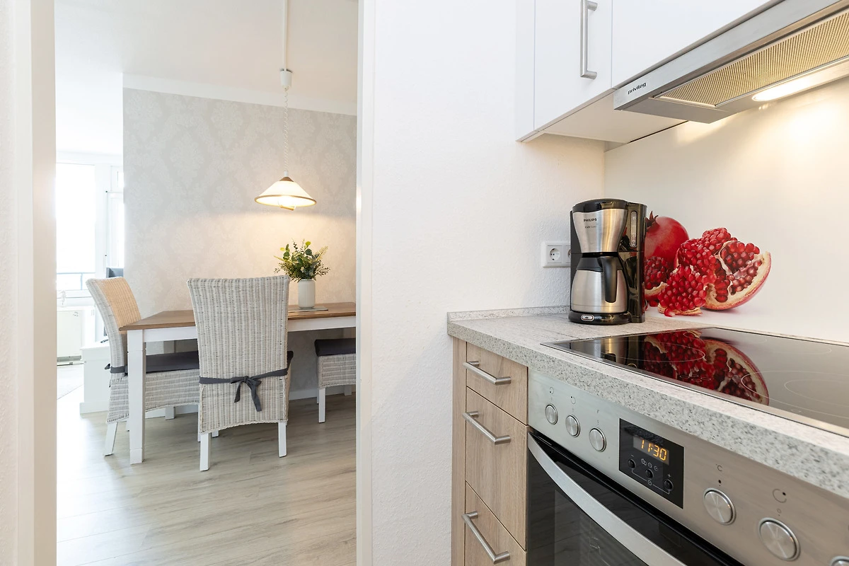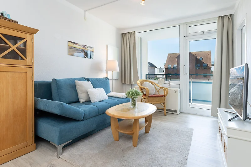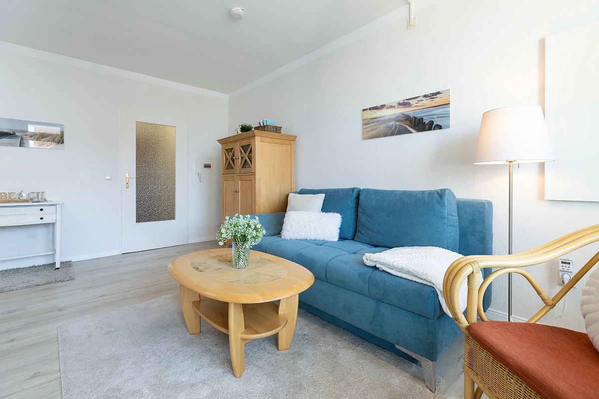 Das gemütliche 2-Zimmer-Appartement für bis zu 2 Personen befindet sich nur wenige Minuten vom Strand, vom Ortszentrum und vom Hafen entfernt. Ein Fahrstuhl bringt sie in die 1. Etage.