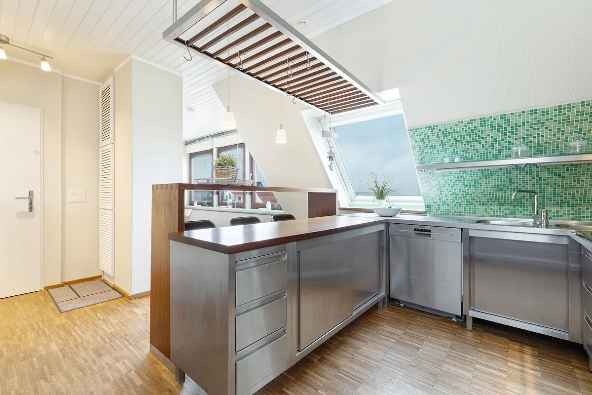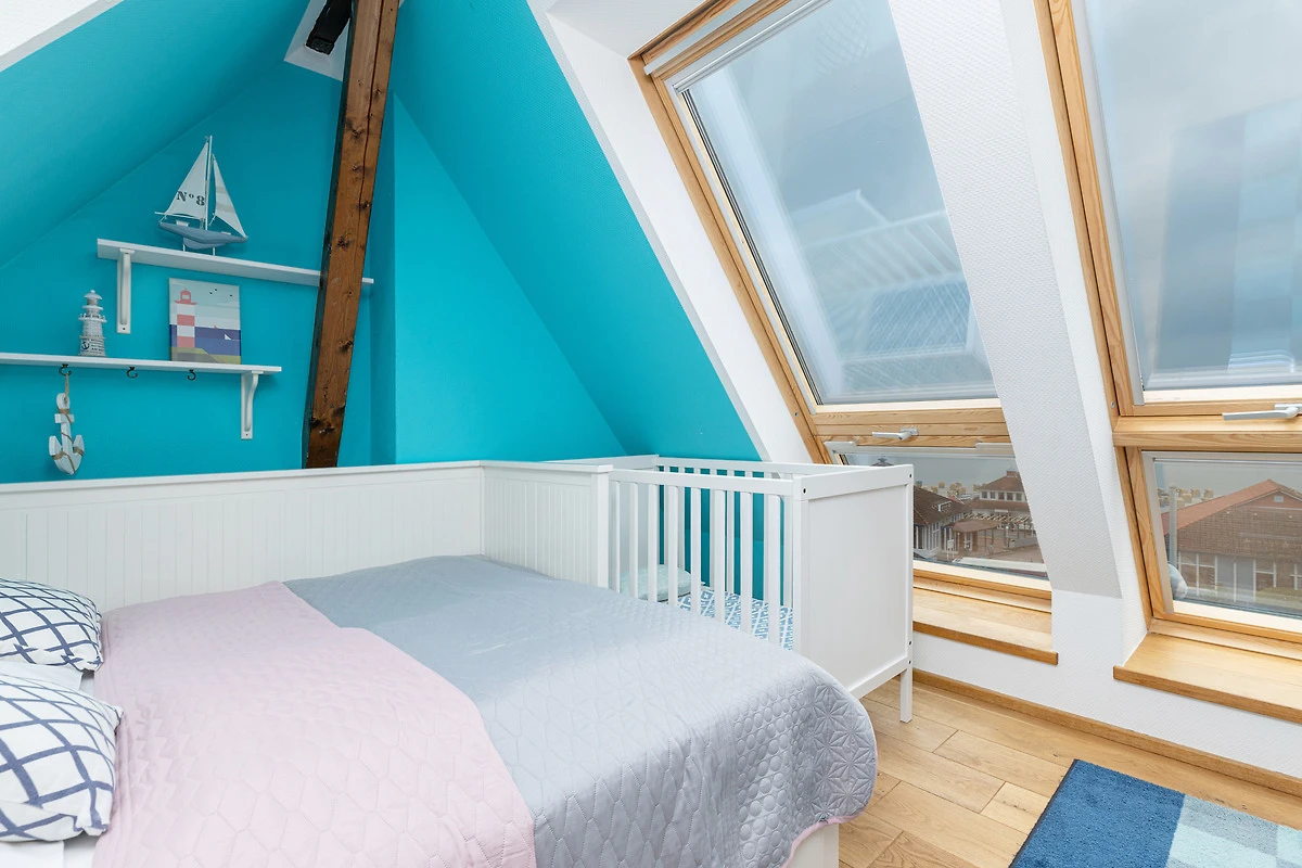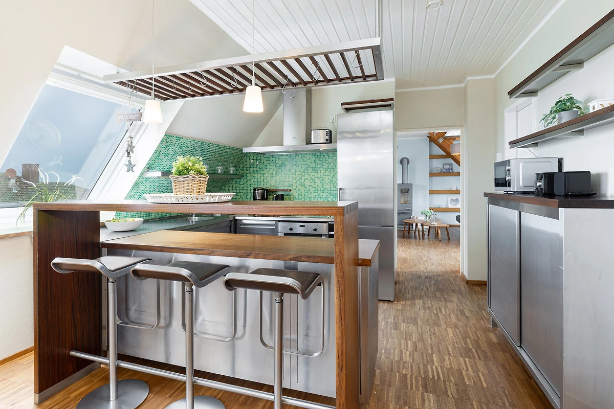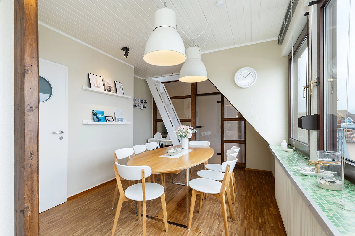 Die liebevoll eingerichtete 5-Zimmer-Dachgeschosswohnung im 4. Stock über zwei Ebenen bietet gemütlichen Platz für 8 Personen.
