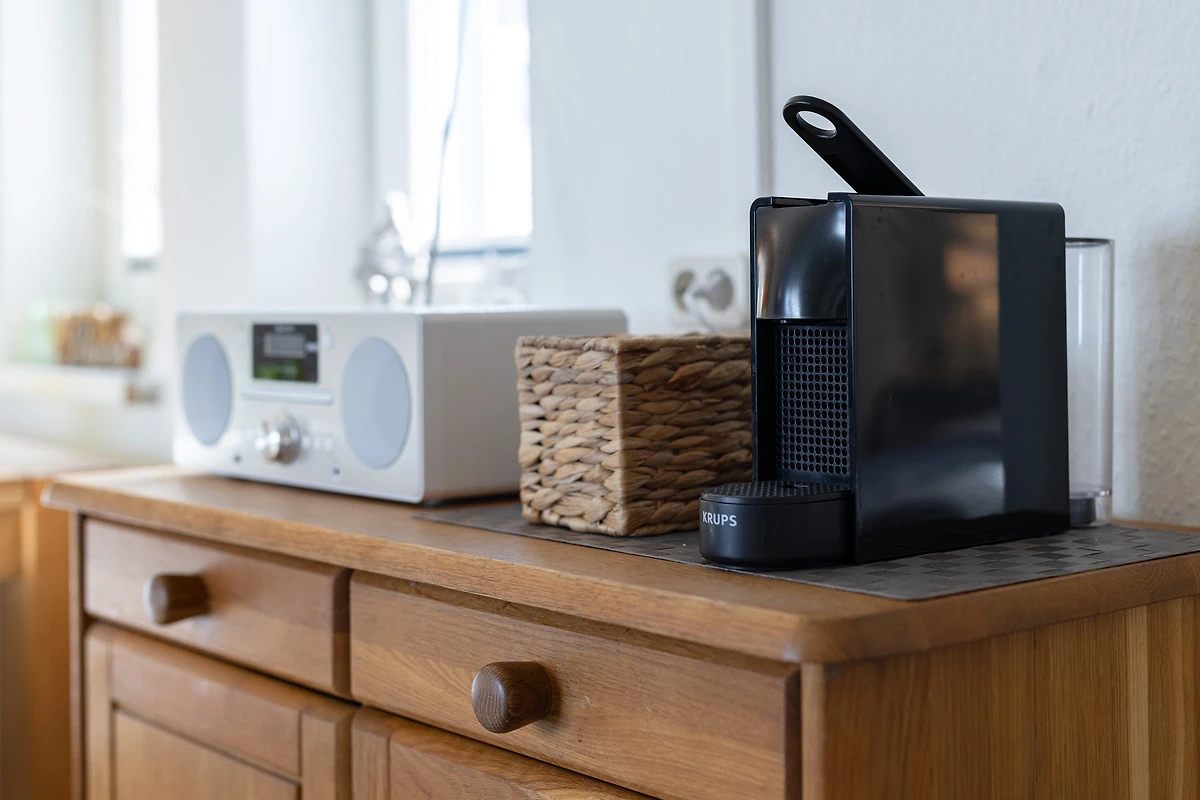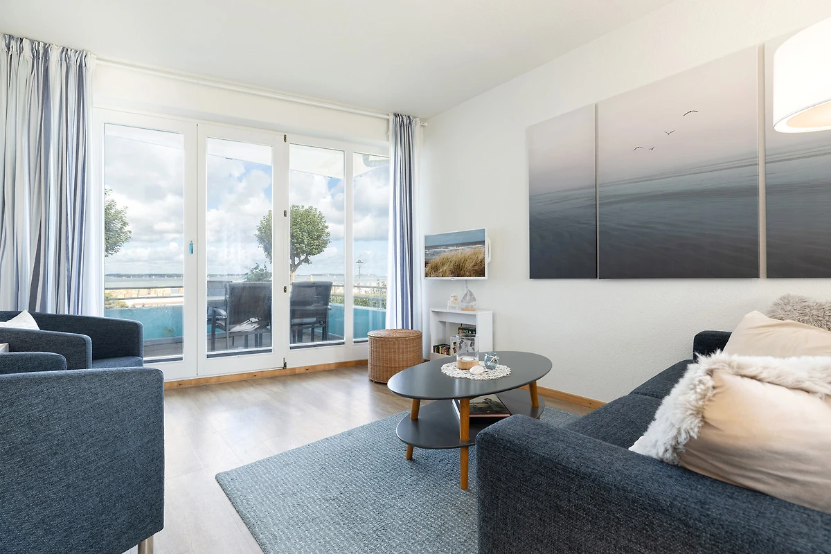 Das grosse Wohnzimmer bietet Platz für eine separate Essecke. Weiter ist es mit einer Couchgarnitur, Schlafsofa und Internetradio ausgestattet. Im Schlafzimmer steht Ihnen ein grosses Doppelbett zur Verfügung. Insgesamt ist es für bis zu 4 Personen geeignet. Auch Hobbyköche kommen voll auf ihre Kosten. Die Küche ist mit allen technischen Geräten ausgestattet. Vielleicht probieren Sie einmal den frisch gefangenen Fisch direkt vom Kutter. Den grossen Flachbildfernseher werden Sie bei dem traumhaften Ausblick auf die Kieler Förde sicherlich nicht so häufig benutzen. Vom geräumigen Balkon haben Sie einen schönen Blick auf den den Strand, die Kieler Aussenförde und die vielen vorbeifahrenden Schiffe.