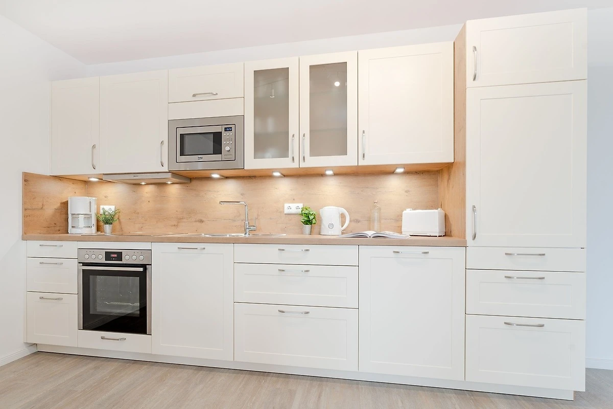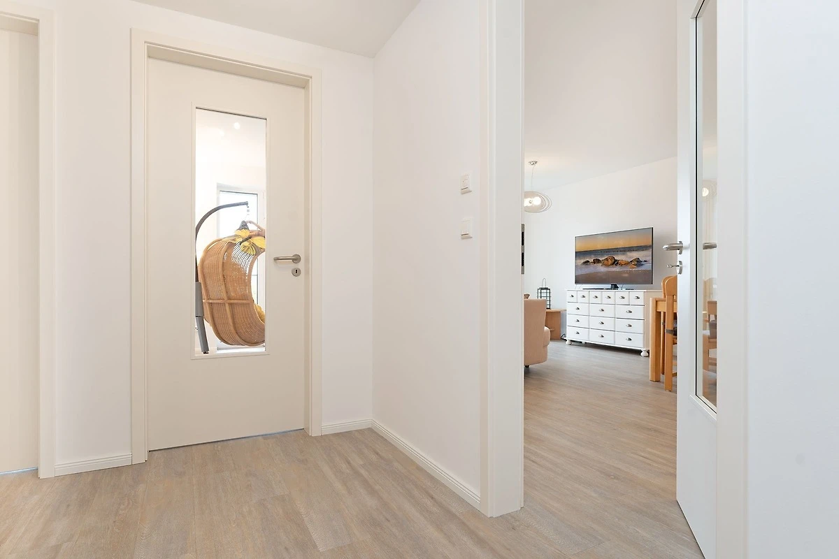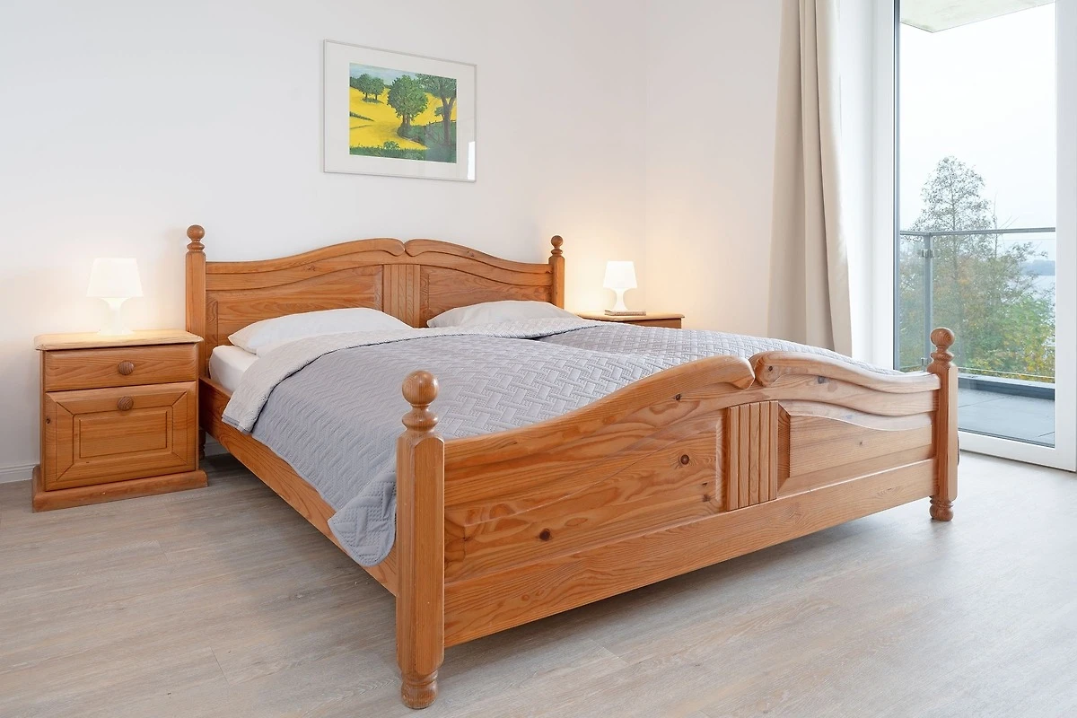Durch die Hanglage, vom See aus gesehen, liegt die Wohnung im ersten Stock, auf der Seite des Einganges hingegen liegt sie im Erdgeschoss. Sie ist also ohne Treppen zu erreichen. Diese Ferienwohnung im Herzen der Holsteinischen Schweiz, bietet Ihnen eine komfortable Unterkunft für einen erholsamen Urlaub in der Natur. Der helle Wohnbereich lädt mit einem gemütlichen Sofa, TV und WLAN zum Entspannen ein. Vom Wohnbereich aus gelangen Sie auf den grossen, überdachten Balkon mit traumhaftem Seeblick, der nach Südwesten ausgerichtet ist – perfekt, um die schöne Landschaft zu geniessen. Die offene Küche ist komplett ausgestattet mit Ceranherd, Backofen, Kühlschrank mit Gefrierfach, Mikrowelle und Kaffeemaschine. Der Essbereich bietet Platz für gemeinsame Mahlzeiten. Die Ferienwohnung verfügt über zwei Schlafzimmer, in denen jeweils ein Doppelbett zum Träumen einlädt. Kleiderschränke bieten Stauraum für Ihre Urlaubsgarderobe.