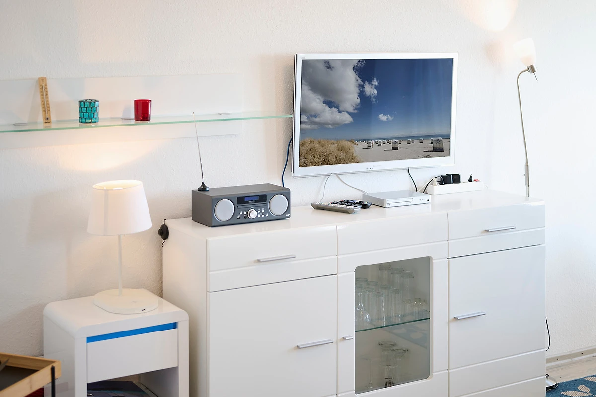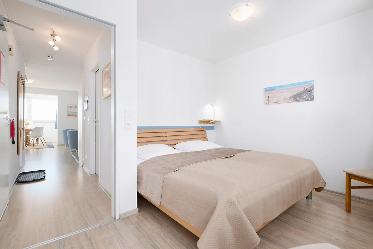 Es empängt Sie ein Wohnbereich mit Schlafcouch un offener Küche. Ein moderner Flachbildfernseher, ein DVD-Player und ein WLAN-Anschluss sorgen für Unterhaltung. Im separaten Schlafzimmer finden Sie einen erholsamen Schlaf im bequemen Doppelbett (2x 90x200 cm) und starten im Duschbad erholt in den neuen Tag.