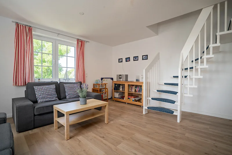 Diese helle, moderne Ferienwohnung im 1. OG bietet auf 3 Zimmern bis zu 4 Personen Platz für einen erholsamen Urlaub am nur 250 m entfernten Schöneberger Strand.