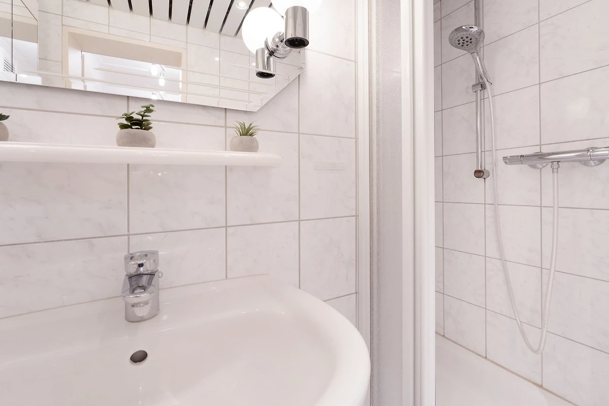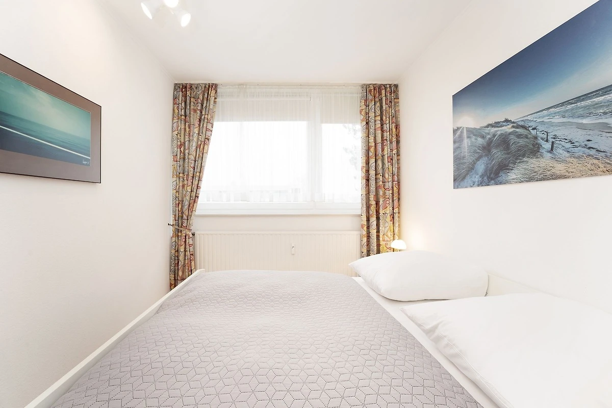 Die Ferienwohnung befindet sich im 3. Stock und mit nur 130 Meter Entfernung zum Strand bietet sie alles für einen entspannten Ostseeurlaub. Der Wohnbereich ist gemütlich eingerichtet und verfügt über TV und Radio. Vom Wohnzimmer aus gelangen Sie auf den nordöstlich ausgerichteten Balkon, der mit Gartenmöbeln ausgestattet ist und sich ideal für ein Frühstück in der frischen Meeresbrise eignet. Die offene Küche bietet sämtliche Annehmlichkeiten, darunter einen Ceranherd, Backofen, Mikrowelle und Kaffeemaschine. Der angrenzende Essbereich lädt zu gemeinsamen Mahlzeiten ein. Die Wohnung verfügt über zwei Schlafzimmer: das Hauptschlafzimmer ist mit einem Doppelbett (2x 90x200 cm) und ein zweites Schlafzimmer mit einer Schlafcouch (90x200 cm) ausgestattet, jeweils mit genügend Stauraum für Ihre Urlaubsgarderobe. Das hell geflieste Duschbad ist innenliegend und bringt Sie frisch in den neuen Tag.