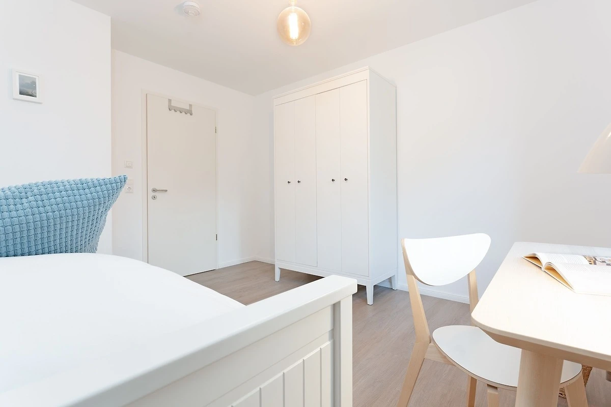 Schlafzimmer 2: 1 Kojenbett (80x200 cm, ausziehbar auf 160x200 cm), Kleiderschrank