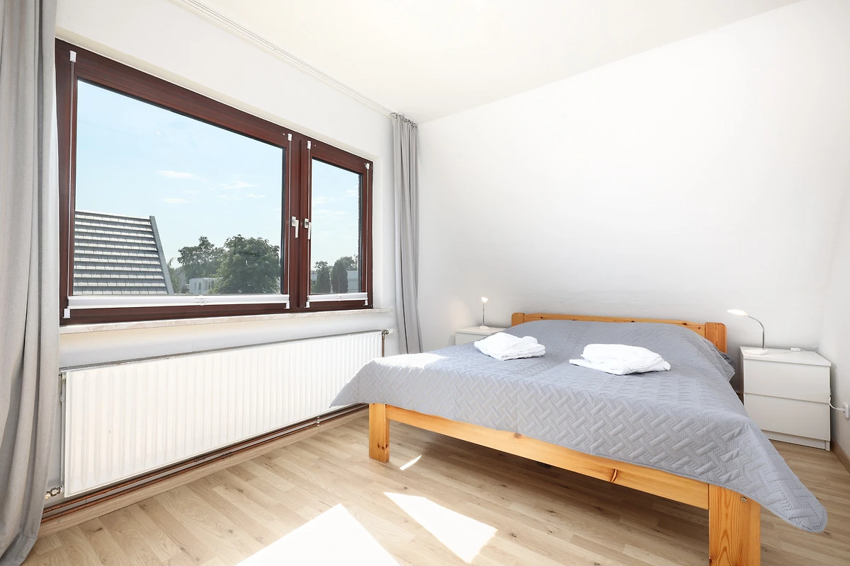 Nur ca. 200 m vom Schöneberger Strand entfernt befindet sich das solide für bis zu 6 Personen ausgestattete 5-Zimmer-Ferienhaus. Die ca. 110 m² verteilen sich über 2 Ebenen mit 4 Schlafzimmern, einer Sauna sowie einer überdachte Terrasse und einem Garten mit Gartenstühlen und Liegen.