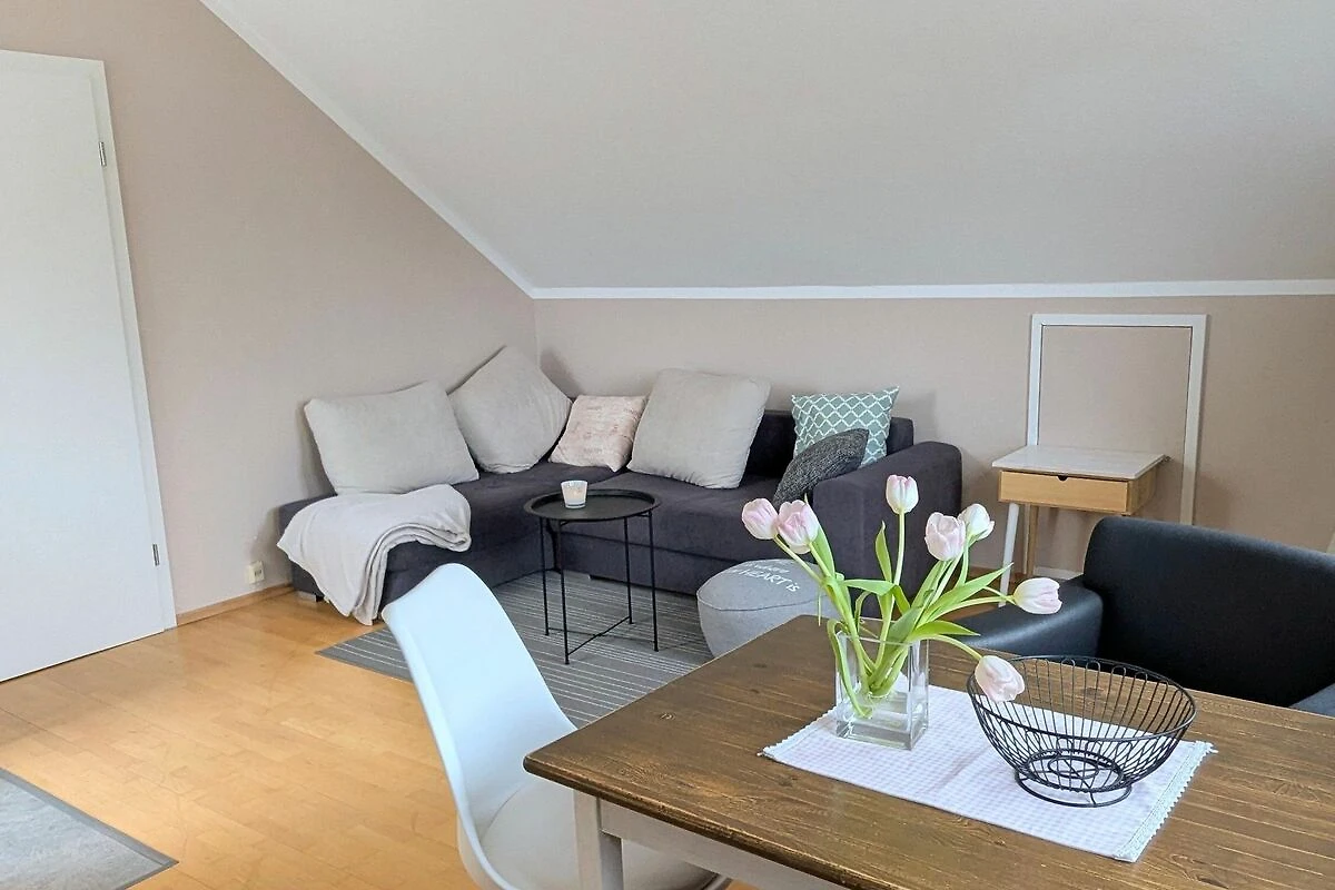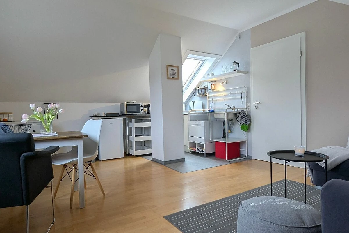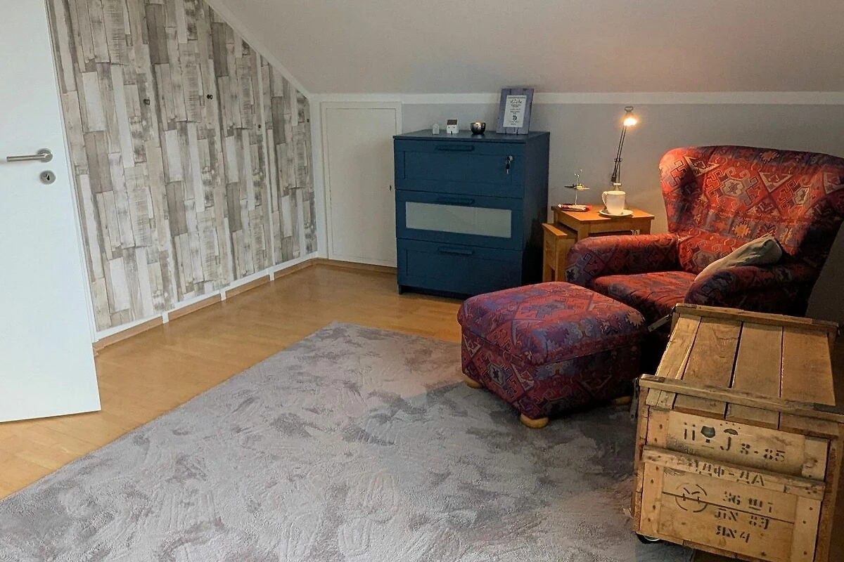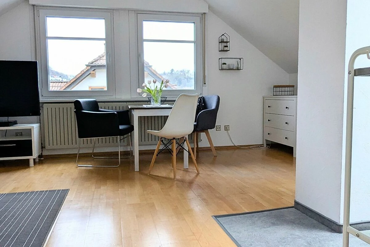 Die Ferienwohnung befindet sich in einem ruhigen Wohngebiet im Dachgeschoss eines Einfamilienhauses mit grossem Garten.