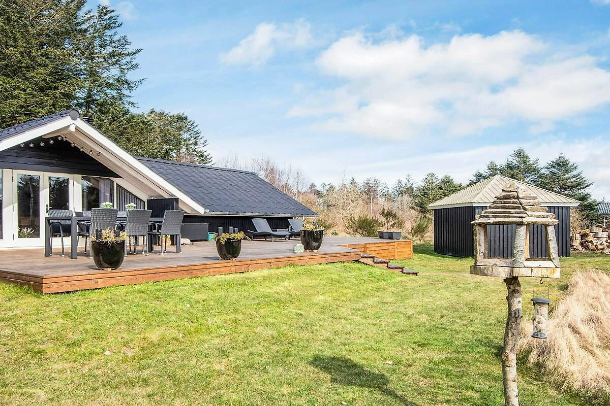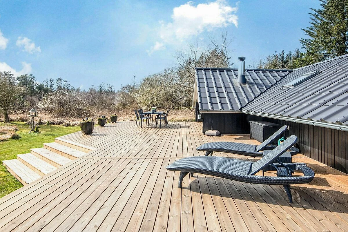 Ansprechendes Ferienhaus auf einem großen, völlig unverbauten Naturgrundstück in ruhiger, malerischer Umgebung nördlich von Løkken. Das Ferienhaus verfügt über eine offene Wohnküche, drei Schlafzimmer und ein Badezimmer mit Dusche und Fußbodenheizung. Das Wohnzimmer ist hell und gut ausgestattet mit modernen Mobiliar im typisch dänischen Ferienhausstil und mit dem Schwerpunkt auf Wohlbefinden und Gemütlichkeit. TV mit Chromecast zum Streamen. Schöner, gut funktionierender Familienbereich mit gutem Licht und Blick auf das große Naturgrundstück. Wenn Sie Glück haben, können Sie dort gelegentlich Rehe oder Eichhörnchen beobachten. Für klimafreundliches Heizen ist das Haus mit einer Luft-Luft-Wärmepumpe ausgestattet. Für kühlere Abende gibt es zudem einen gemütlichen Holzofen. Im Außenbereich steht Ihnen eine große, offene Terrasse, auf der Sie ungestört verweilen können, zur Verfügung. Von der Terrasse aus besteht direkter Zugang zum großen, hügeligen Naturgrundstück. Haustiere sind nicht erlaubt. Keine Vermietung an Jugendgruppen erwünscht!Kurz vor Ihrem Ankunftsdatum kann eine rückzahlbare Kaution erhoben werden. Die Kaution stellt sicher, dass Ihr Aufenthalt reibungslos verläuft, und deckt eventuelle Zusatzleistungen oder Verbrauchskosten ab.Diese Kaution deckt den Verbrauch von Nebenkosten während Ihres Aufenthalts sowie zusätzliche in Anspruch genommene Leistungen ab.Der endgültige Betrag wird anhand der tatsächlichen Zählerstände und Nutzung zusätzlicher Services angepasst. Ein etwaiger Restbetrag wird Ihnen innerhalb von 21 Tagen nach dem Check-out zurückerstattet.Die Kaution dient lediglich als Vorauszahlung für Leistungen, die Sie ohnehin bezahlen würden, und ermöglicht einen reibungslosen Ablauf Ihres Aufenthalts und Check-outs.