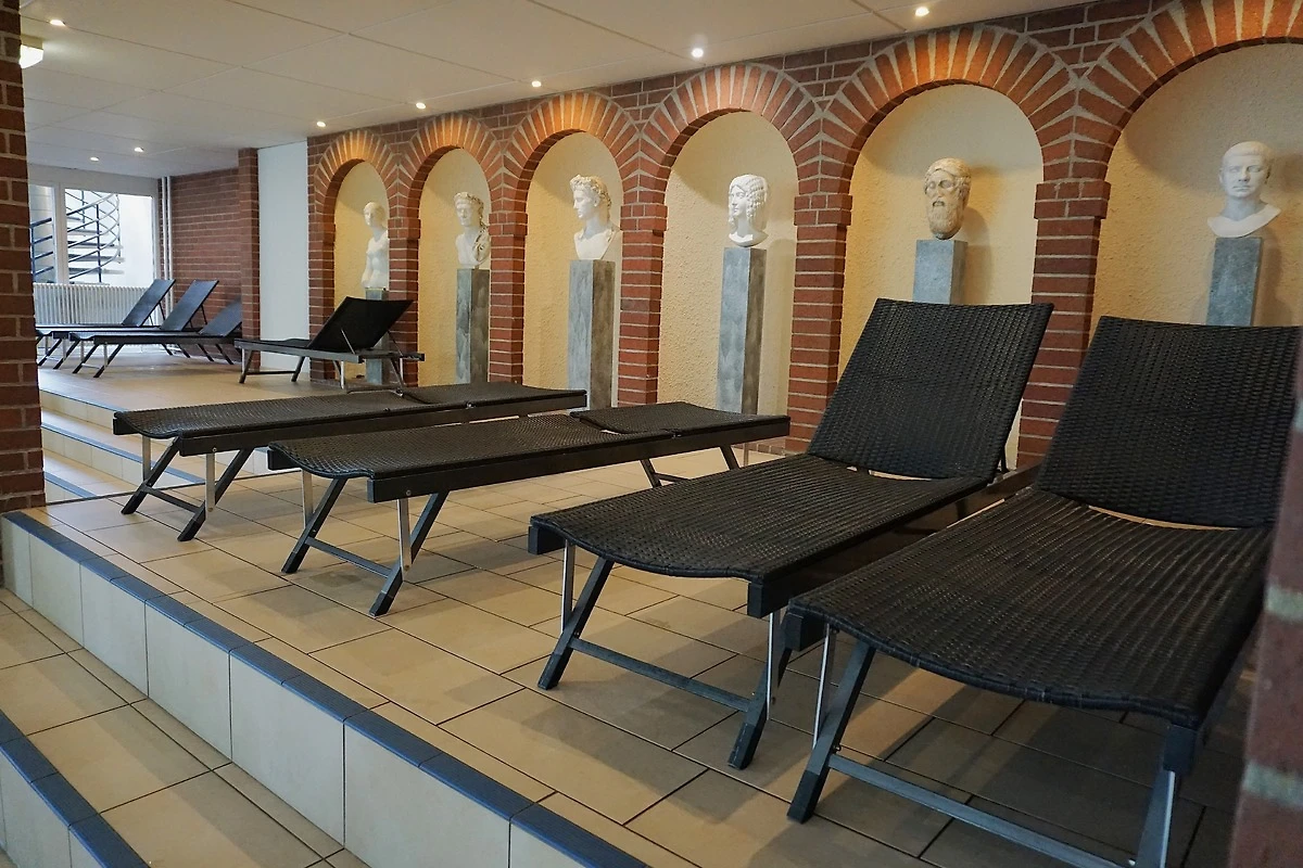 Die für Sie kostenloses "Römerlagune" (ca. 1.500 m² grosser Wellnessbereich mit Hallenbad, Saunen, Wärmekabine, Fitnessraum und Tischtennis) befinden sich im gleichen Haus und sind bequem mit dem Fahrstuhl erreichbar.