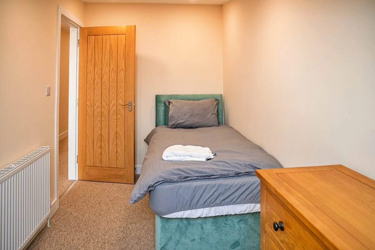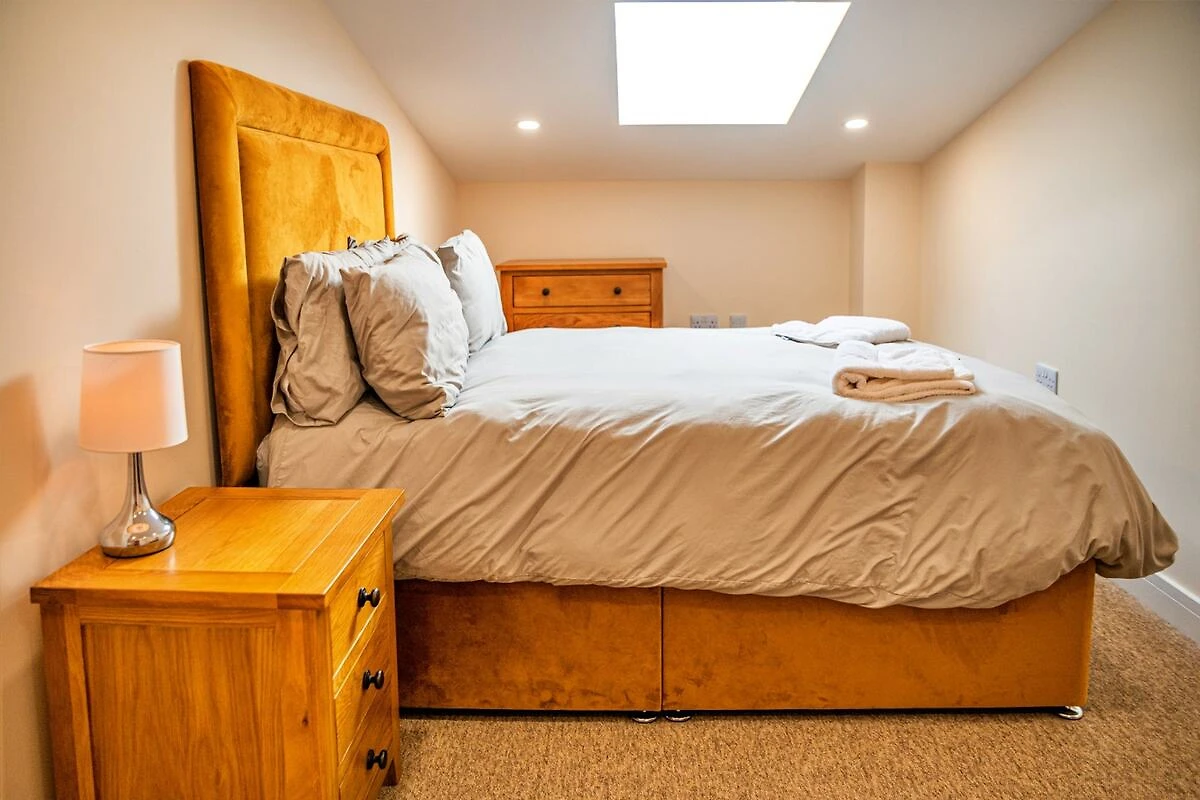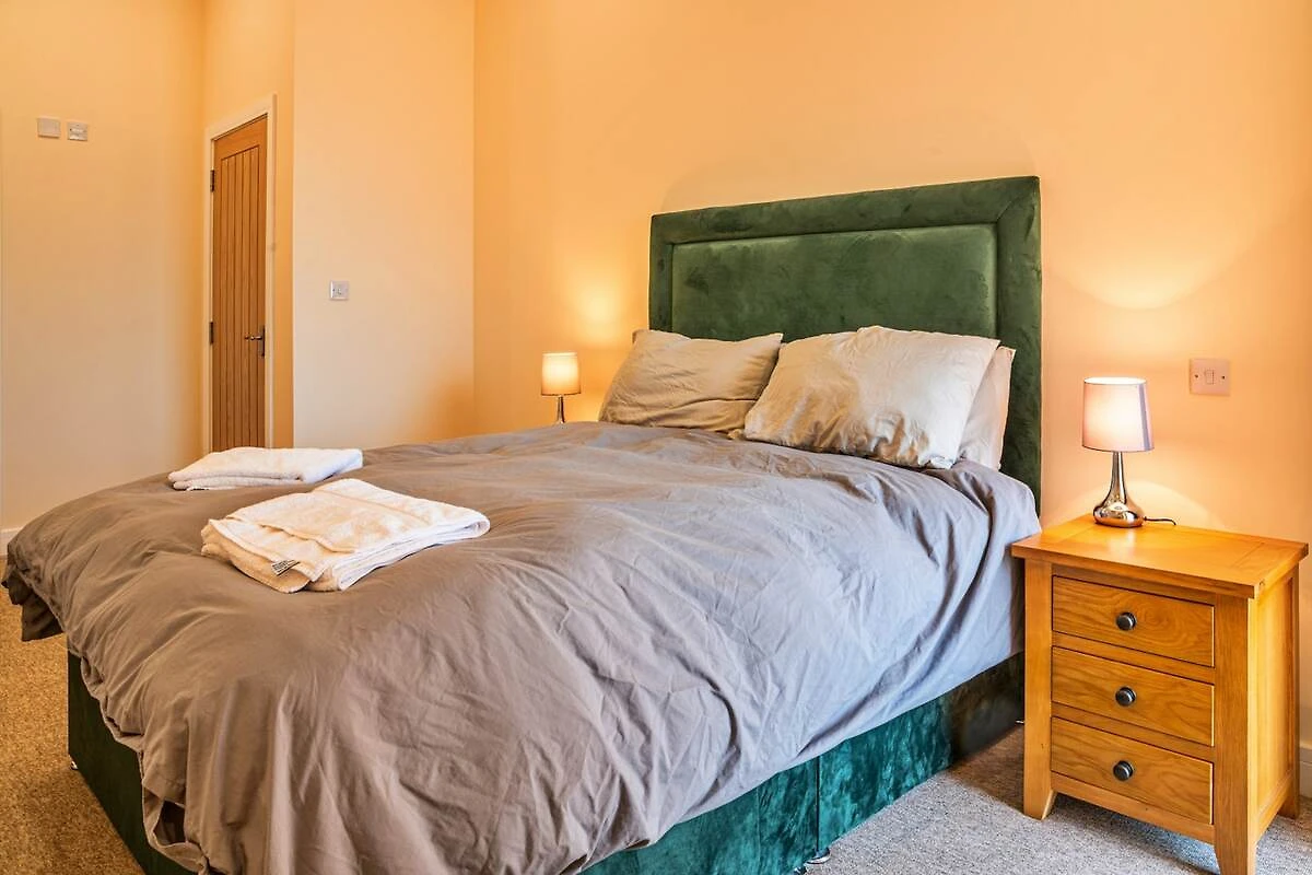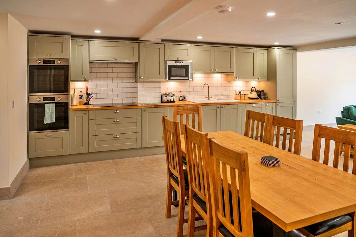 Diese geräumige und wunderschön gestaltete umgebaute Scheune bietet luxuriöse Unterkünfte für bis zu acht Gäste. Der offene Wohnbereich verfügt über einen Smart-TV und Falttüren, die auf einen privaten Garten mit Whirlpool und Sitzgelegenheiten im Freien führen – ideal zum Entspannen nach einem erlebnisreichen Tag. Die voll ausgestattete Küche verfügt über moderne Geräte wie einen Elektroherd, ein Kochfeld, eine Mikrowelle, einen Kühlschrank, einen Gefrierschrank und einen Geschirrspüler. Ein Hauswirtschaftsraum mit Waschmaschine und Wäschetrockner sorgt für Komfort während Ihres Selbstversorger-Aufenthalts. Darüber hinaus ist die Unterkunft haustierfreundlich und somit ideal für Familien, die mit Haustieren reisen.