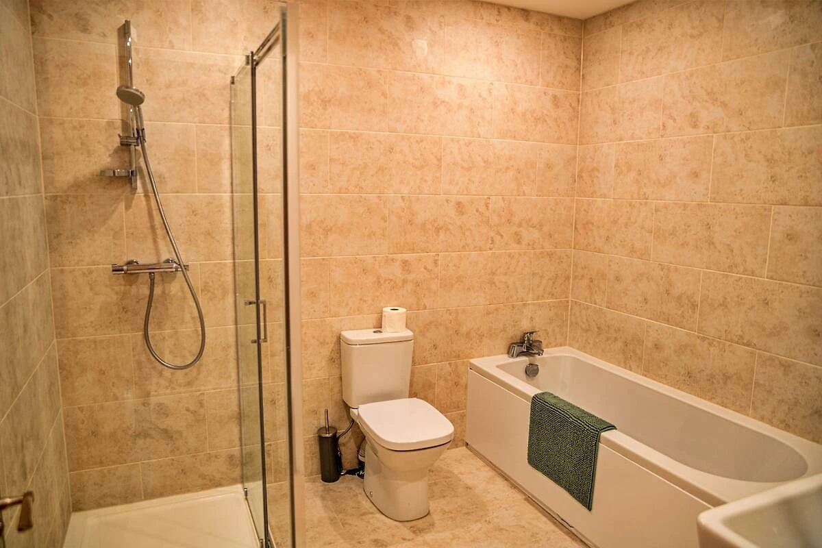 Das Anwesen verfügt über vier komfortable Schlafzimmer: zwei Kingsize-Betten, ein Doppelbett und zwei Einzelbetten und bietet Flexibilität für große Gruppen oder Familien. Es gibt zwei Badezimmer, darunter ein eigenes Badezimmer im Hauptschlafzimmer mit einer Duschkabine, sowie ein Familienbadezimmer mit Badewanne und separater Duschkabine. Zu den weiteren Annehmlichkeiten gehören Internetzugang, Heizung und Parkplätze sowie Bettwäsche und Handtücher.