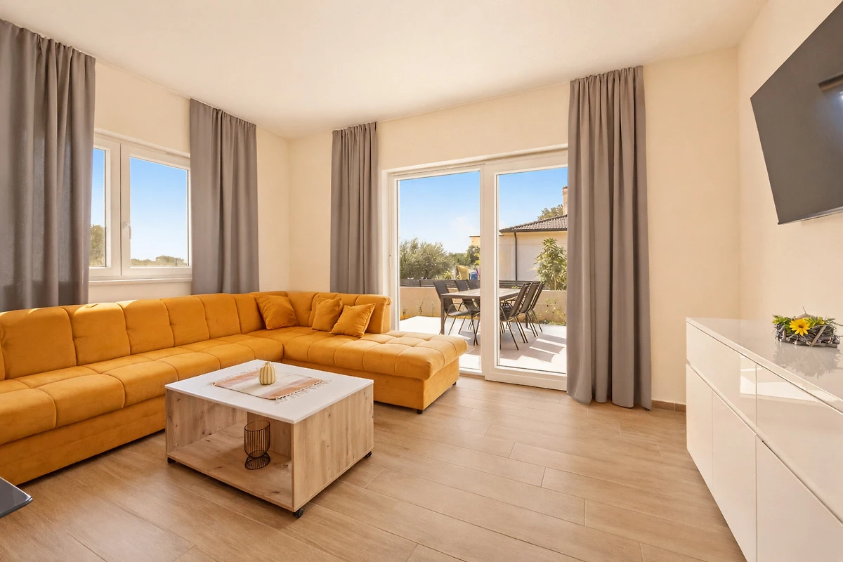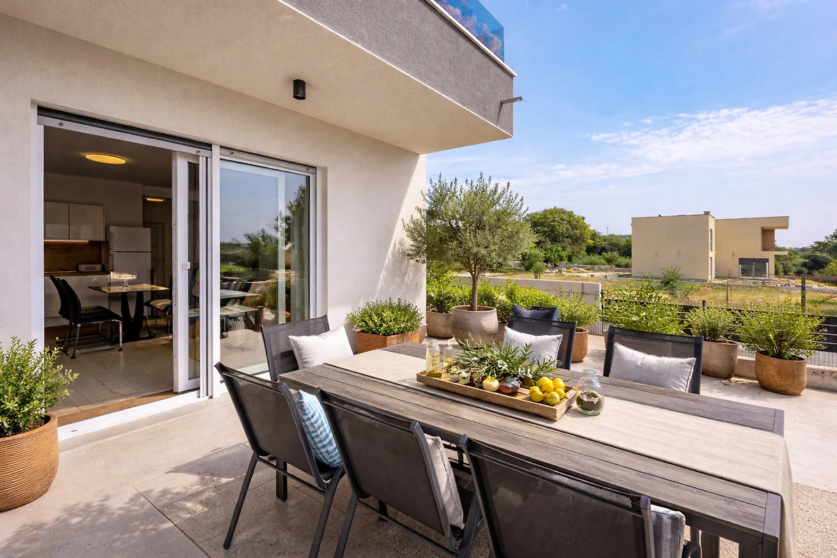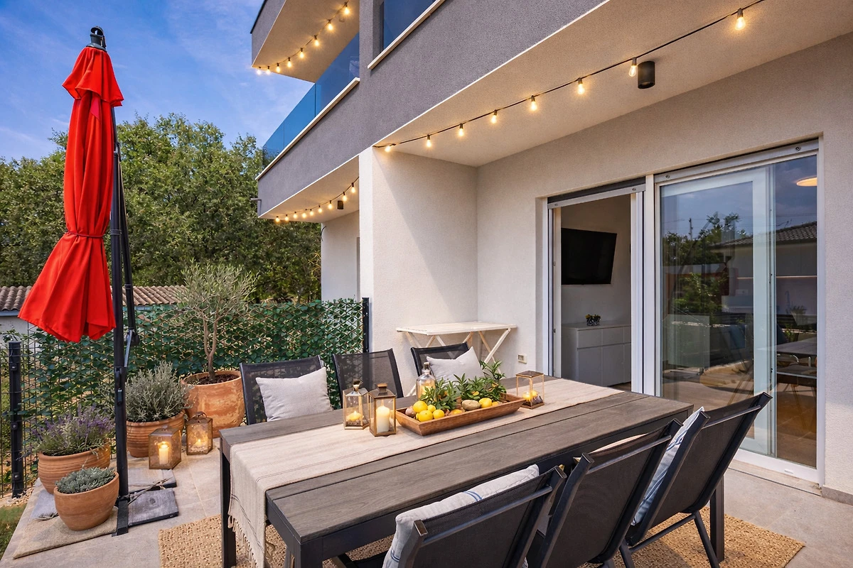 Entdecken Sie die Ferienwohnung ****HEDA in Medulin, Istrien, ein modernes Haus, das bis zu 6 Gäste in seinen 120 Quadratmetern Wohnfläche beherbergen kann.
