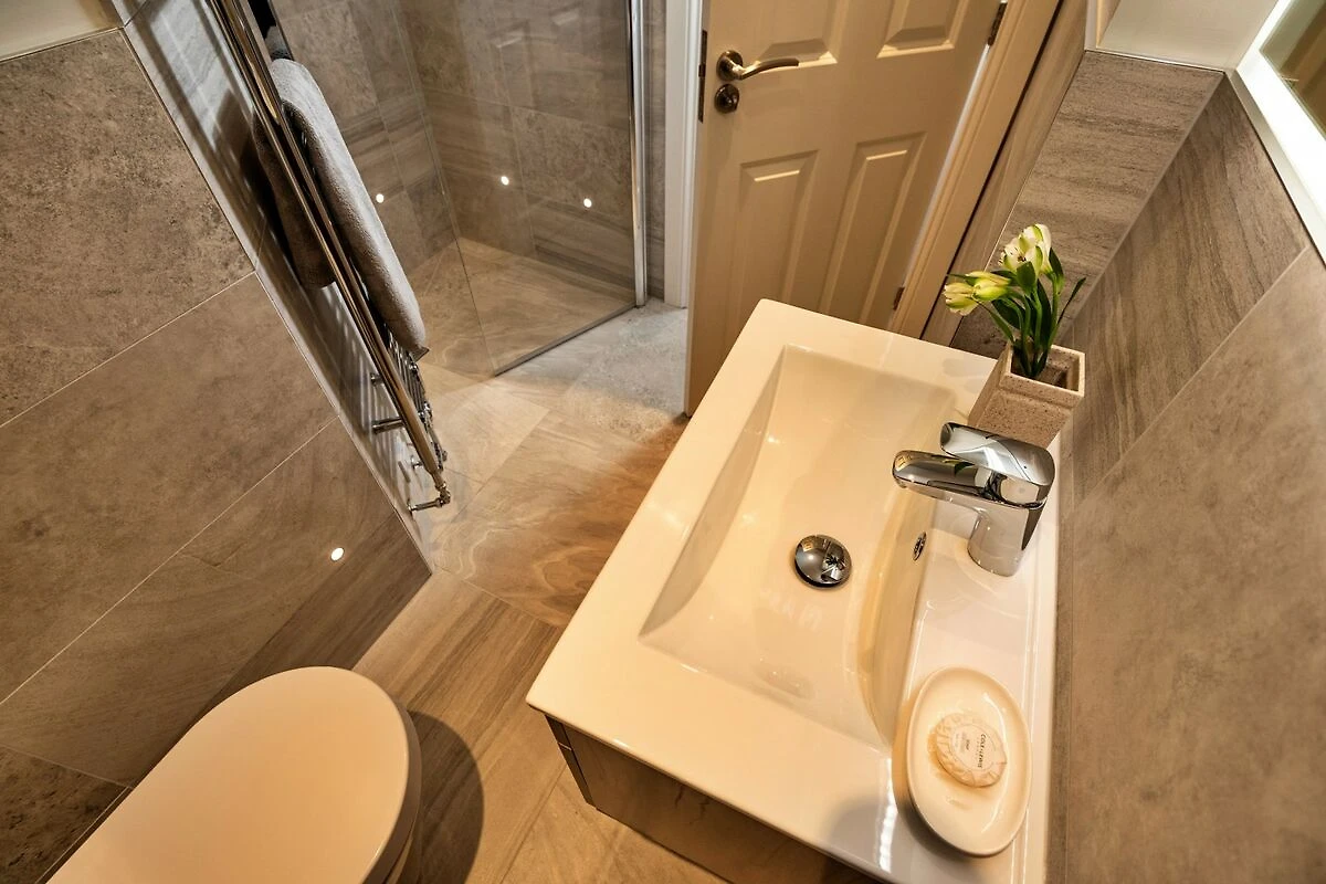 Die voll ausgestattete Küche bietet alles, was Sie für die Zubereitung köstlicher Mahlzeiten oder eines besonderen Familienfestes benötigen. Eine Auswahl an Tee, Kaffee und Milch steht bei Ihrer Ankunft bereit. Beide Schlafzimmer sind hochwertig eingerichtet und verfügen jeweils über ein Kingsize-Bett, Freeview-TV und ein luxuriöses eigenes Badezimmer. Ein Badezimmer verfügt über eine ebenerdige Dusche und Toilette, während das andere über eine zusätzliche Badewanne verfügt, die sich perfekt für entspannende Bäder eignet. Für zusätzlichen Komfort befindet sich im Flur eine zusätzliche separate Toilette.