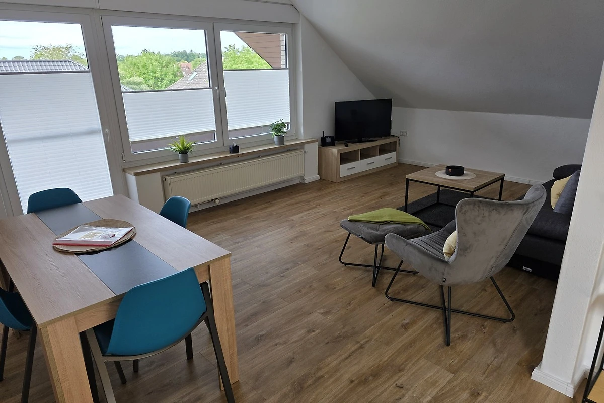 Die Wohnung befindet sich im OT Triangel im ersten Obergeschoss eines Wohnhauses in ruhiger Lage. Sie verfügt über 2 separate Schlafzimmer mit (1 Doppelbett und 2 Einzelbetten), eine offene Wohn-Essküche mit EBK, sowie Mikrowelle, Kaffeemaschine, Kühlschrank, Fernseher und WLAN, das Bad verfügt über 1 Dusche. Nichtraucher Ferienwohnung.