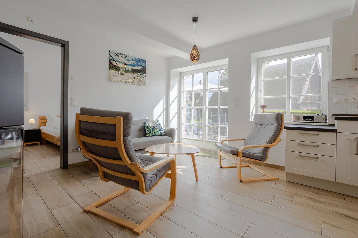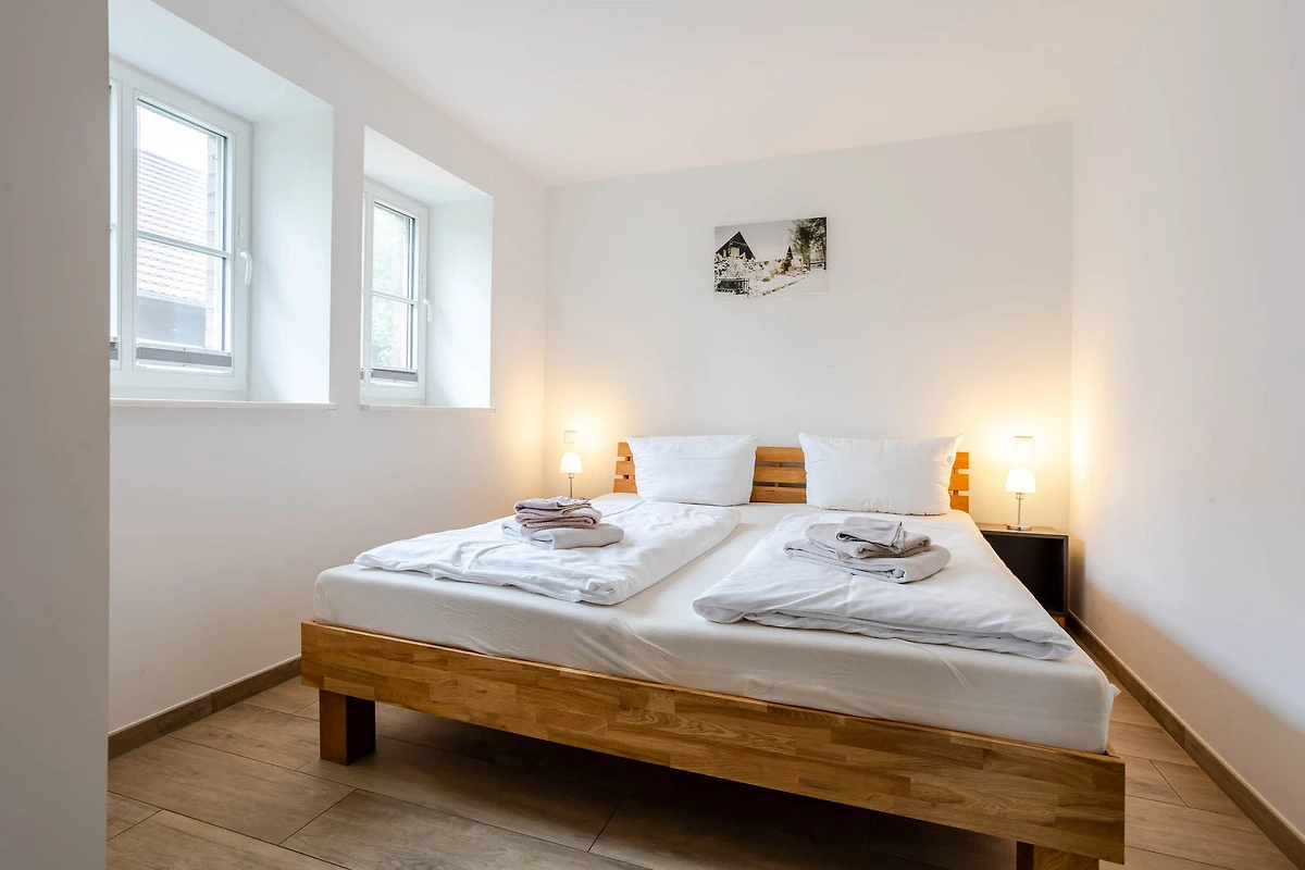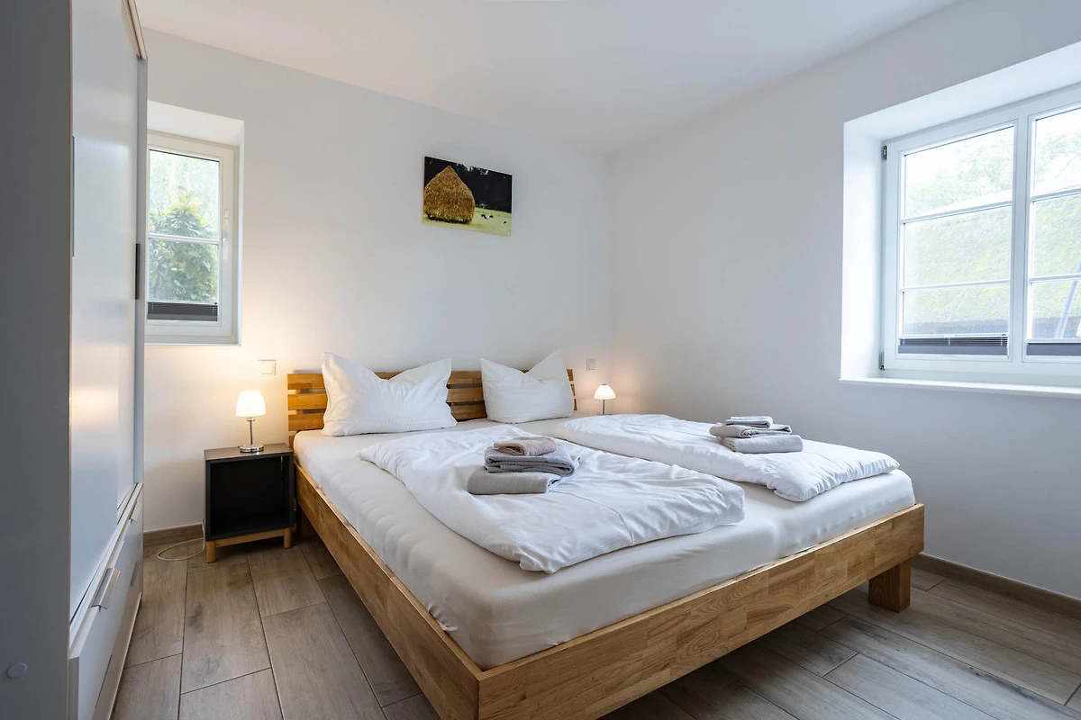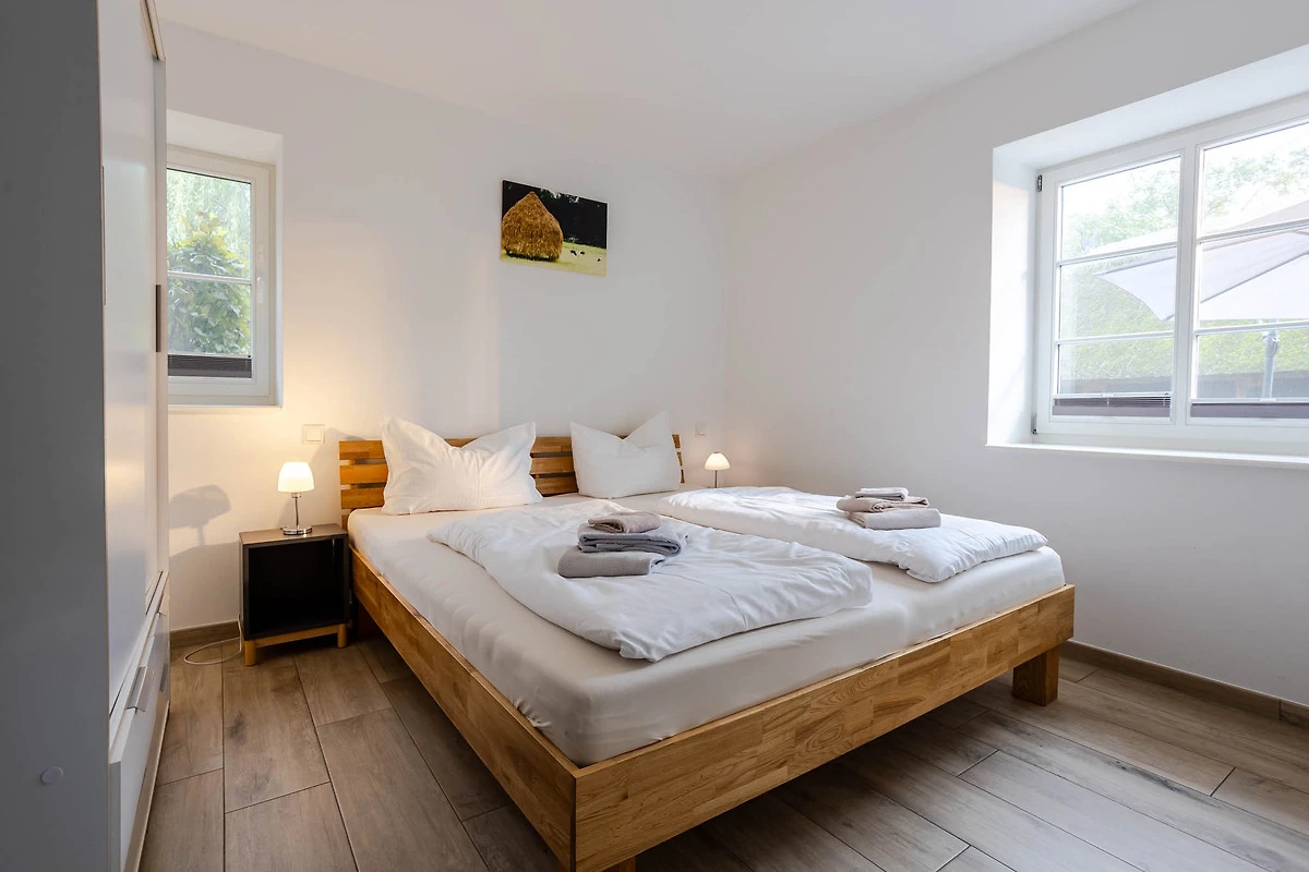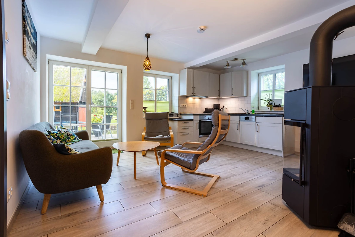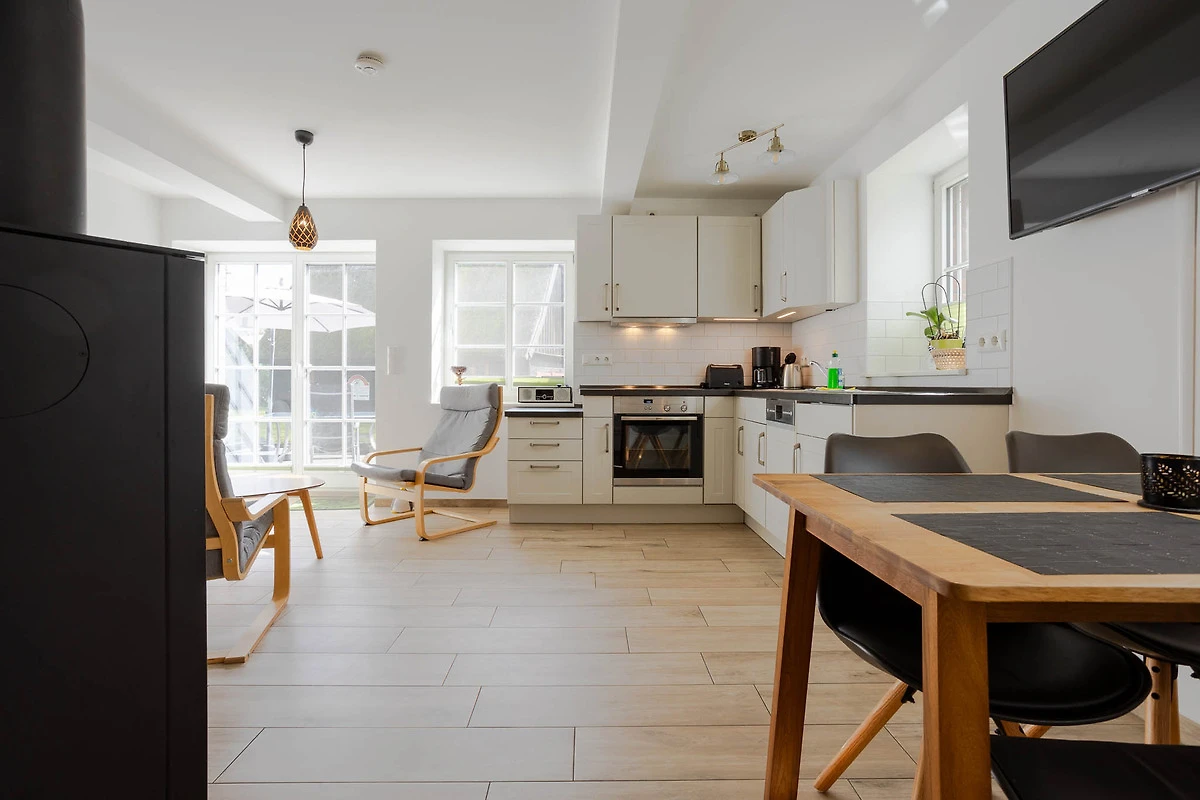 Der Name dieser Ferienwohnung für 4 Personen ist Programm. Bis zum Jahr 2003 standen in dieser Ferienunterkunft noch Rinder. Und dort, wo Sie heute Ihr Frühstück geniessen, wurden Kälber aufgezogen. Ein absolutes Alleinstellungsmerkmal dieser Ferienwohnung am Wasser ist mit Sicherheit die sonnige Terrasse direkt am Dolzkefliess, die vom Wohnzimmer aus betreten werden kann. Zwei getrennte Schlafzimmer sorgen für Rückzugsräume und ein grosses Duschbad für ein gewisses Wellnessfeeling. Alle Räume dieser grosszügigen 3-Zimmer-Ferienwohnung werden über den Fussboden geheizt. Für einen Schuss Behaglichkeit sorgt ein Kamin und alle Fenster sowie die Terrassentür sind durch Insektengitter geschützt. Natürlich haben Sie auch Zugriff auf das Gäste-WLAN. Ein Stellplatz für Ihren PKW finden Sie direkt an der Ferienwohnung. Eine 11 kW Wallbox ist ebenfalls vorhanden und zusätzliche Parkplätze können in fussläufiger Entfernung angemietet werden.