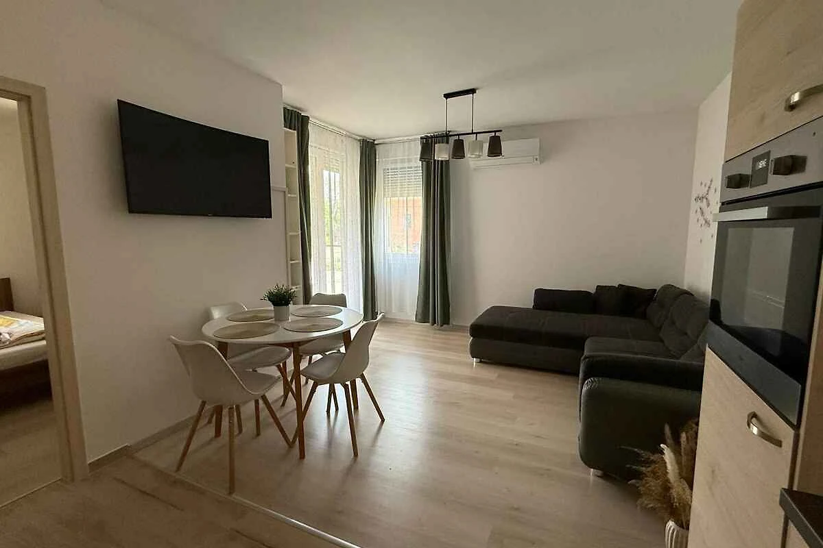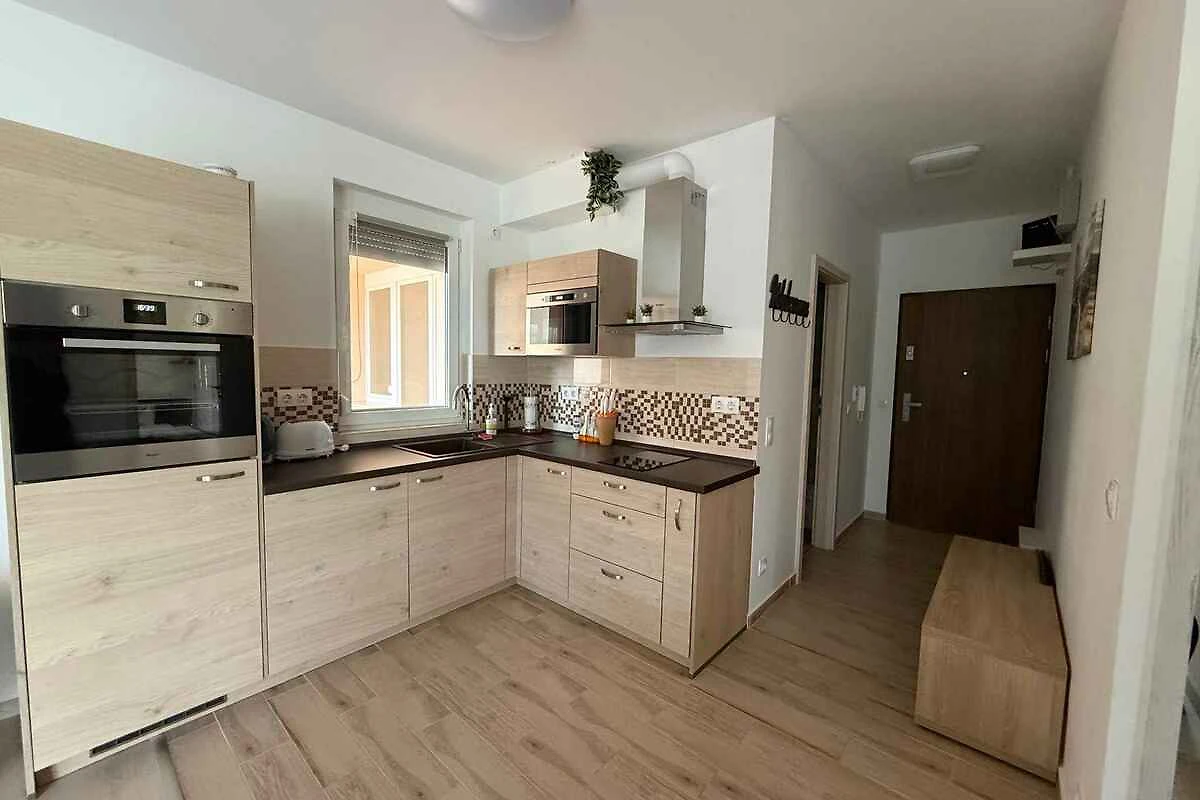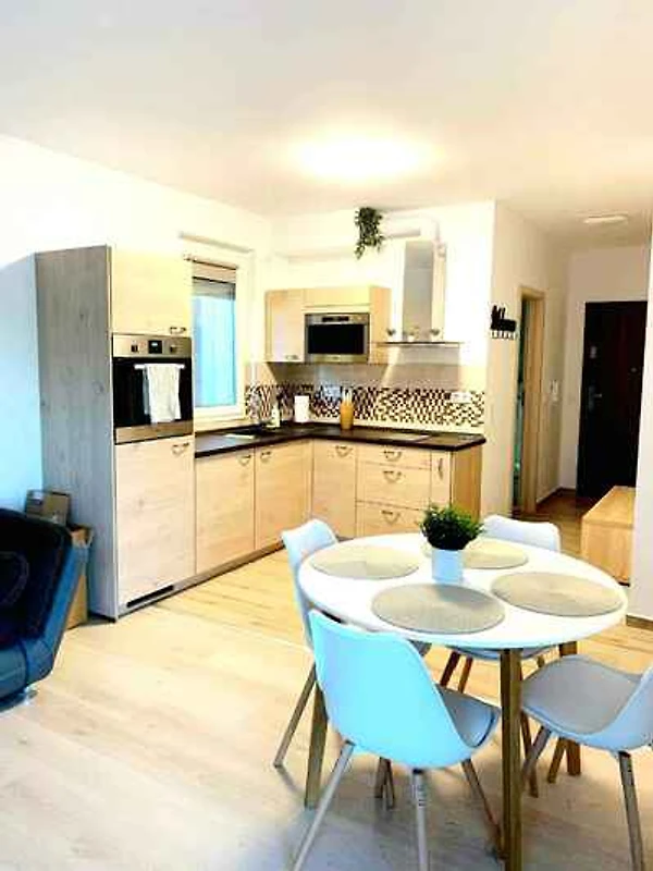 Die Ferienwohnung befindet sich in einem Apartementhaus und ist modern eingerichtet. Das Grundstück liegt in belebter Umgebung, in einer FerienHaus-Siedlung. Auch wegen der sonnigen Lage am Wasser ist das Domizil beliebt.