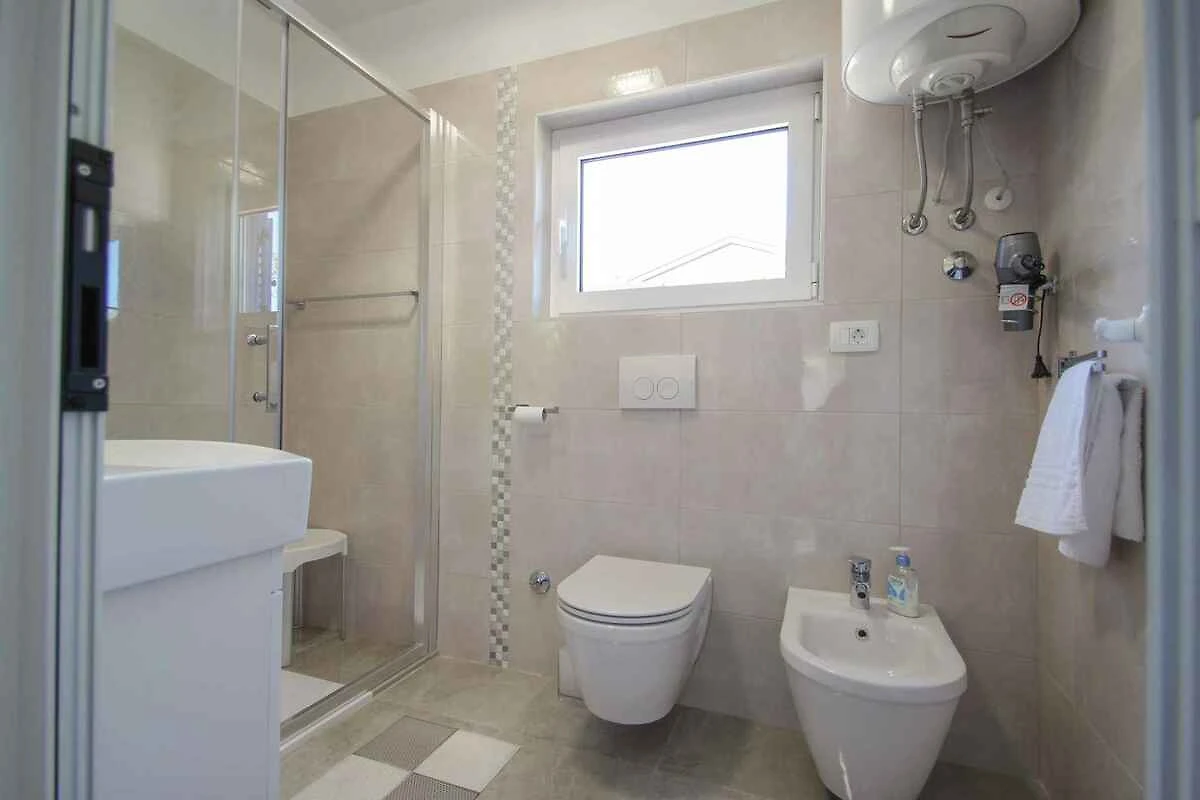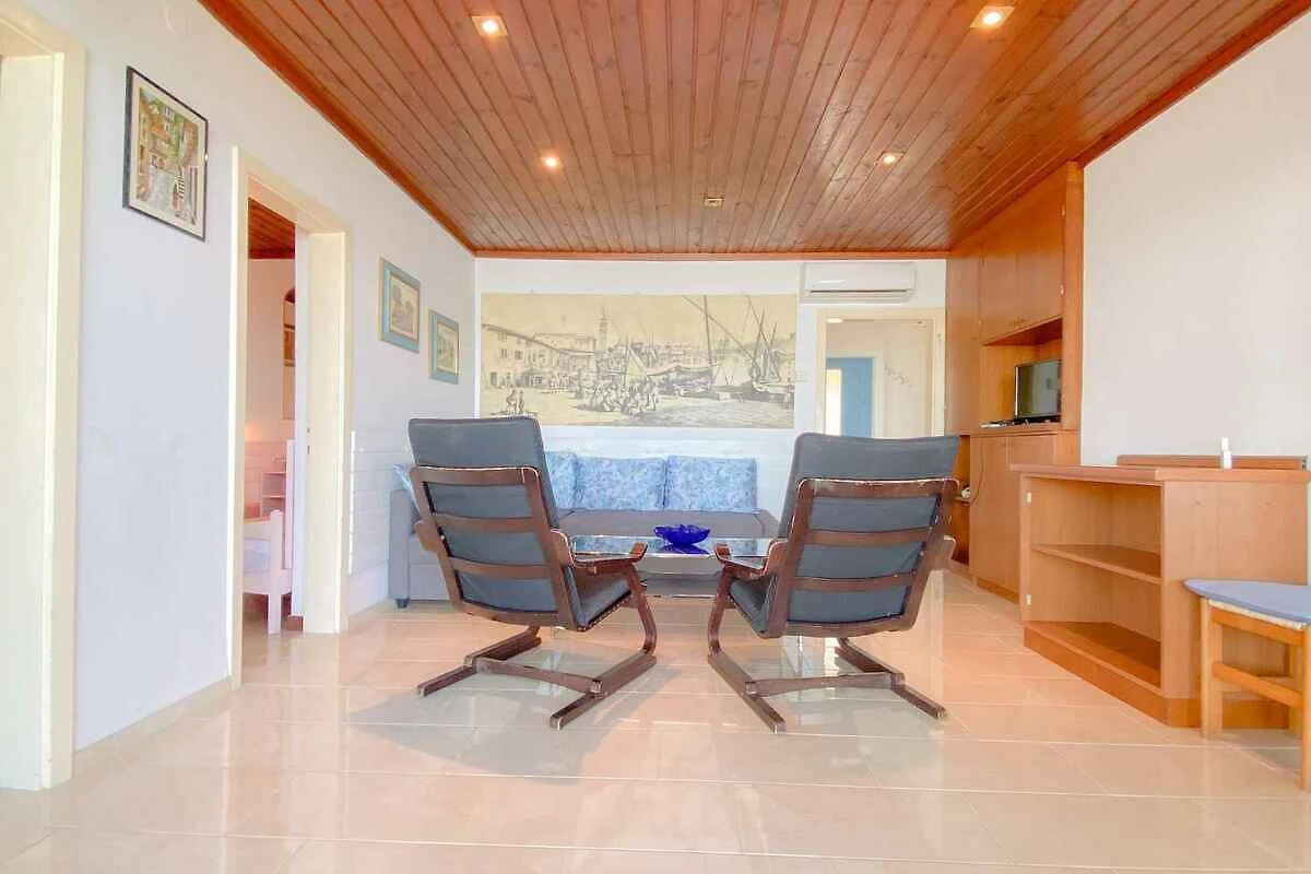 Einkauf 150 m, Restaurant 250 m, Ortszentrum 5,8 km. Im Sommer: Adria 5 m in Dajla (Strand 5 m in Dajla mit Kies, Steinen und Badeplateaus).
