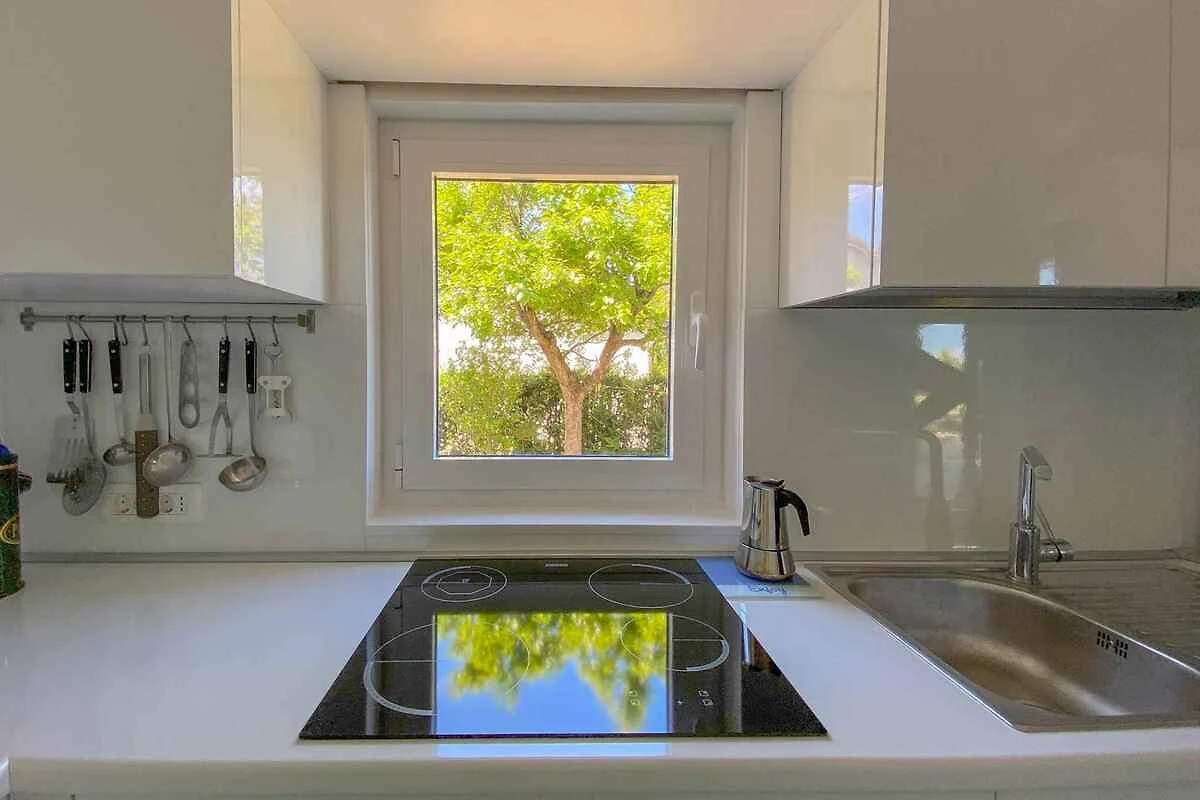 Der Eingang in Ihre Villa befindet sich im Erdgeschoss, ist ebenerdig und führt direkt in den Flur. Wohnzimmer (Durchgangszimmer) mit Sitzecke und TV. Schlafzimmer mit 1 Doppelbett. 2 Schlafzimmer jeweils mit 2 Einzelbetten. Kochecke in der Wohnküche (Durchgangszimmer) mit TV, Essecke (6 Plätze), Elektroherd, Kühlschrank, Mikrowelle, Kaffeemaschine und Zugang zur Terrasse. Bad mit Dusche, 1 Waschbecken, WC, Bidet und Fenster. Separates WC mit 1 Waschbecken, WC und Fenster.