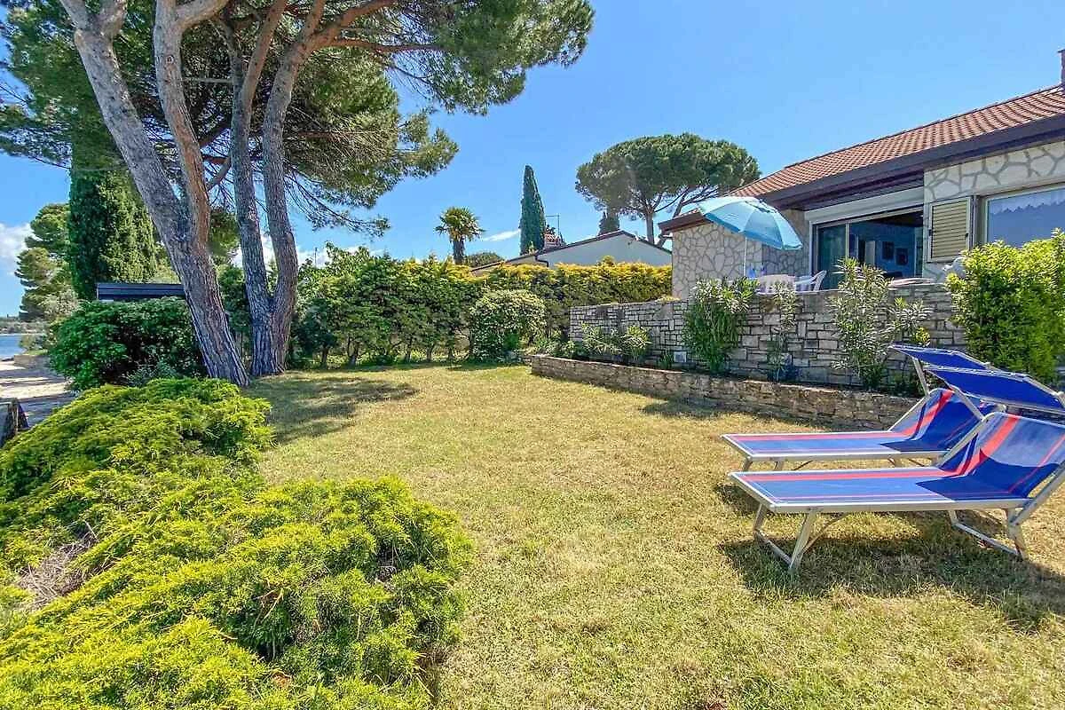 Novigrad, Ortsteil Dajla. Die Villa befindet sich auf einem Wassergrundstück mit Wiese und Blumen. Der Vermieter wohnt nicht im Haus oder auf dem Grundstück. Die Zufahrt erfolgt über eine Nebenstrasse (asphaltiert). Parkplatz auf dem Grundstück.