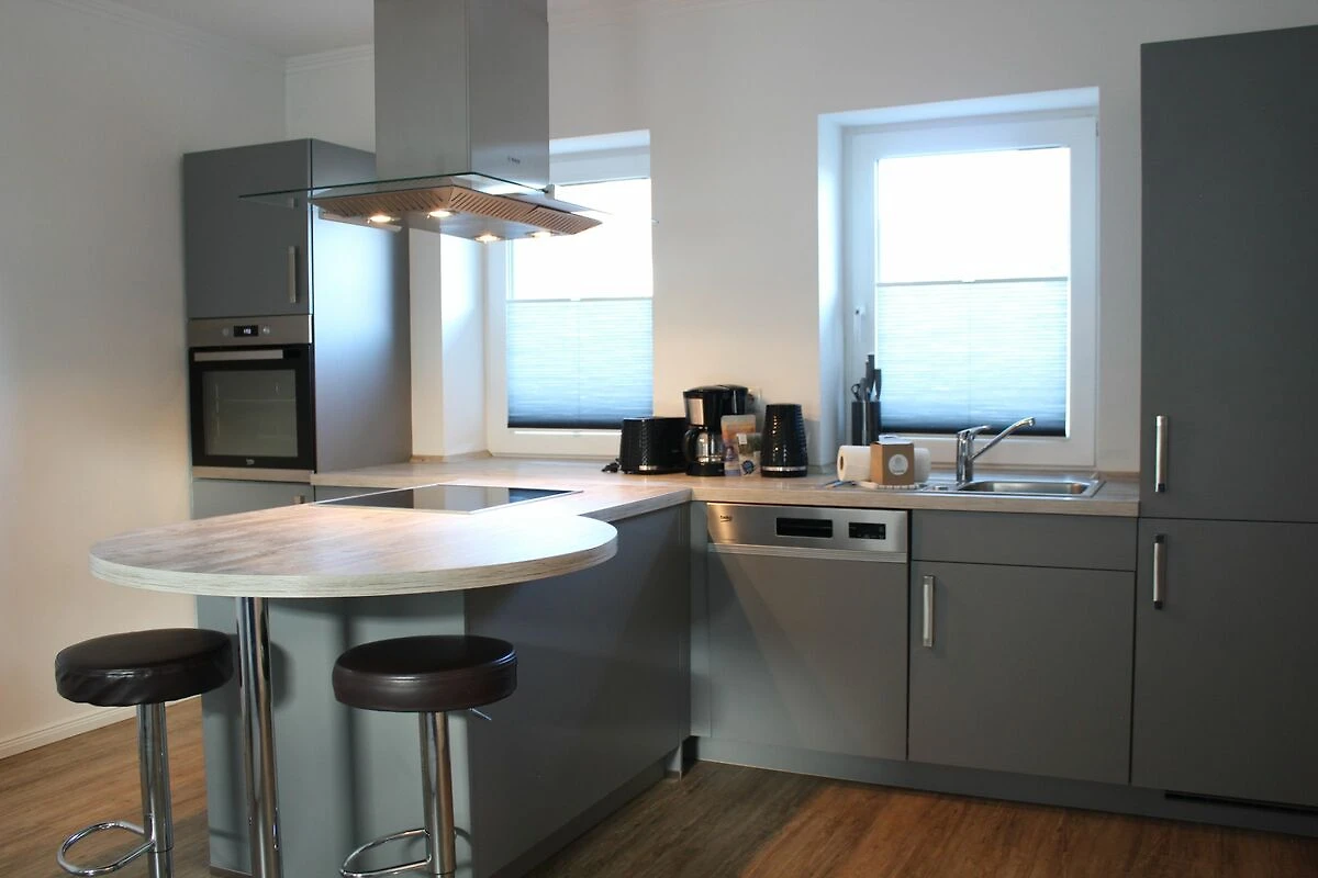 Das Herzstück der Wohnung bildet der großzügige Wohn- und Essbereich – hell, offen und modern gestaltet. Die hochwertige Einbauküche ist voll ausgestattet und lässt keine Wünsche offen – ob gemütliches Frühstück, gemeinsames Kochen oder ein romantisches Abendessen, hier haben Sie alles, was Sie brauchen.