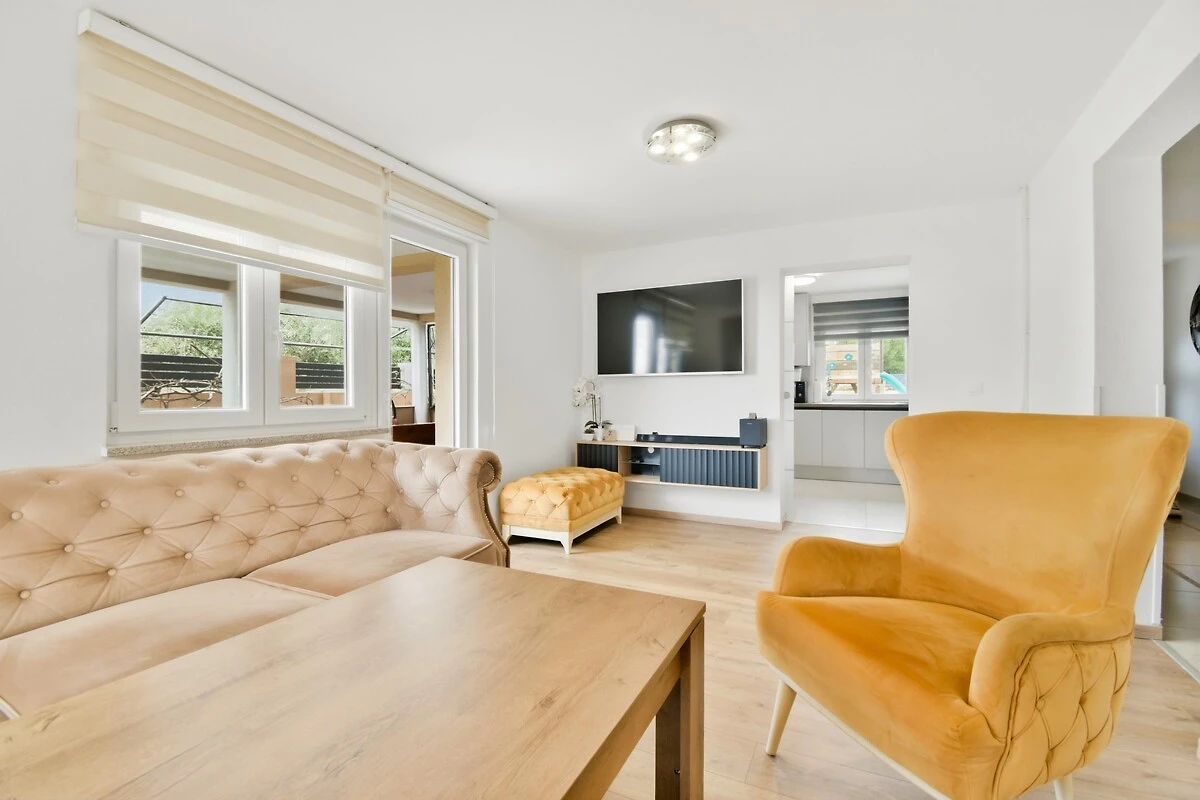 Das Haus Enard befindet sich in der ruhigen Siedlung Valtura, nahe Pula, und ist die perfekte Wahl für einen Familienurlaub für bis zu 6 Personen. Restaurants und Geschäfte sind etwa 4,5 km vom Unterkunft entfernt.Auf der oberen Terrasse befindet sich ein Jacuzzi mit Liegestühlen – ideal zum Entspannen in der Sonne oder für einen entspannten Abend. Der Jacuzzi leuchtet nachts schön und schafft eine besondere Atmosphäre für romantische oder ruhige Momente unter den Sternen.Im Erdgeschoss gibt es drei Schlafzimmer mit Doppelbetten, eines davon hat einen eigenen TV. Das Haus verfügt über ein Badezimmer.Im Garten gibt es einen Esstisch im Freien, einen Holzkohlegrill sowie Kindereinrichtungen – eine Rutsche und Schaukeln. Den Gästen steht ein überdachter Parkplatz zur Verfügung. Zwei Parkplätze befinden sich im Innenhof des Hauses, und vor dem Gebäude gibt es zusätzlichen Platz für weitere Autos. Die gesamte Einheit befindet sich im Erdgeschoss, mit Ausnahme des Jacuzzis, der sich auf der oberen Terrasse befindet.