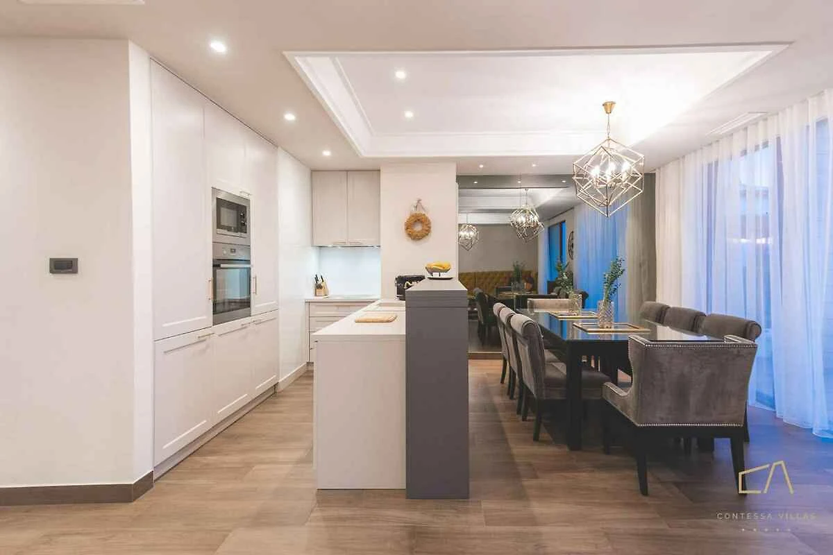 Die einzeln stehende Villa ist modern und luxuriös eingerichtet. Das Grundstück befindet sich im Ortszentrum. Auch wegen der sonnigen Lage ist das Domizil beliebt. Zur Nutzung stehen zur Verfügung: Sonnenschirm, Sonnenliege, Grillmöglichkeit, Terrasse und Gartenmöbel.