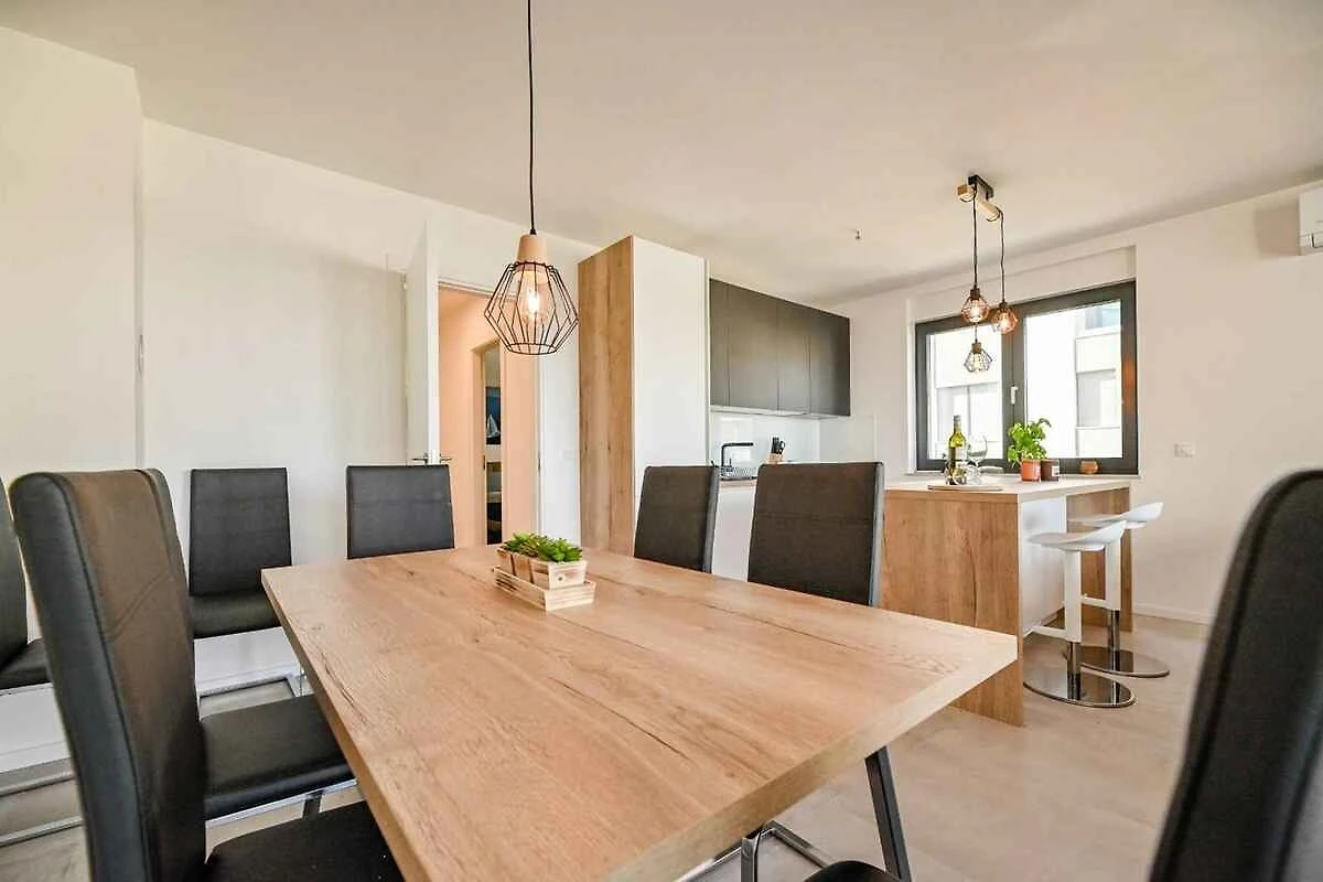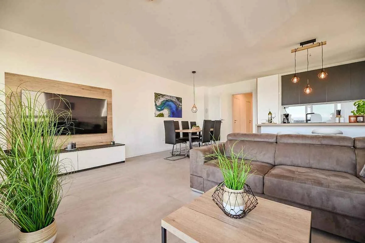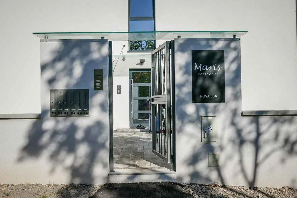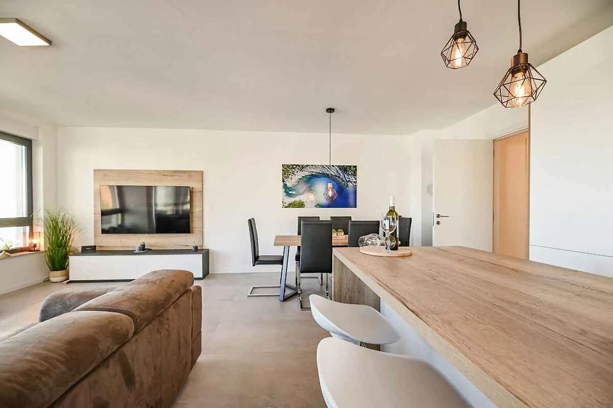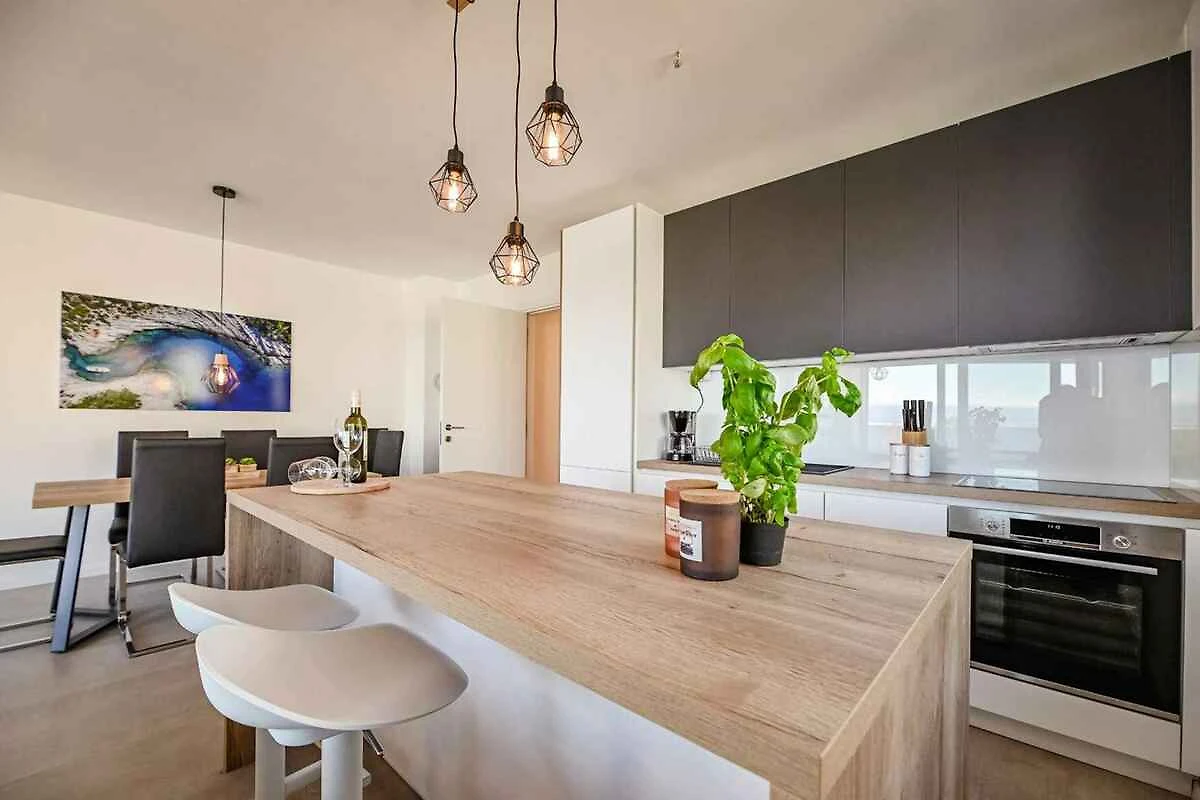 Die Ferienwohnung befindet sich in einem Apartementhaus und ist modern eingerichtet. Das Grundstück liegt in einem Wohngebiet. Auch wegen des Ausblicks vom Grundstück auf das Meer und der sonnigen Lage am Wasser ist das Domizil beliebt.