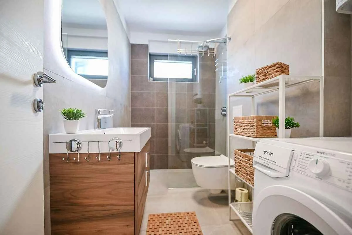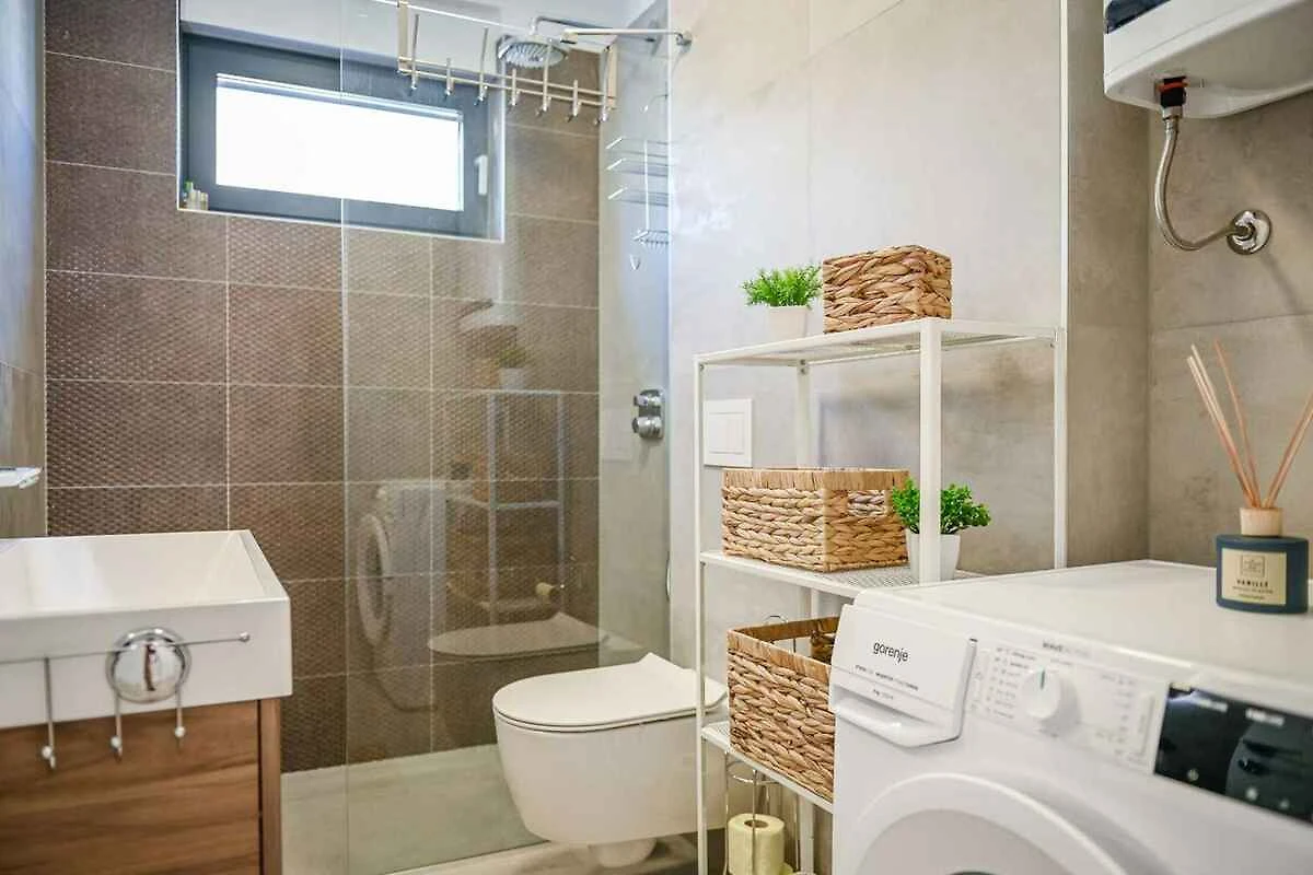 Klimaanlage. Internetzugang (WLAN) und Waschmaschine. Fernsehempfang erfolgt via Satellit.