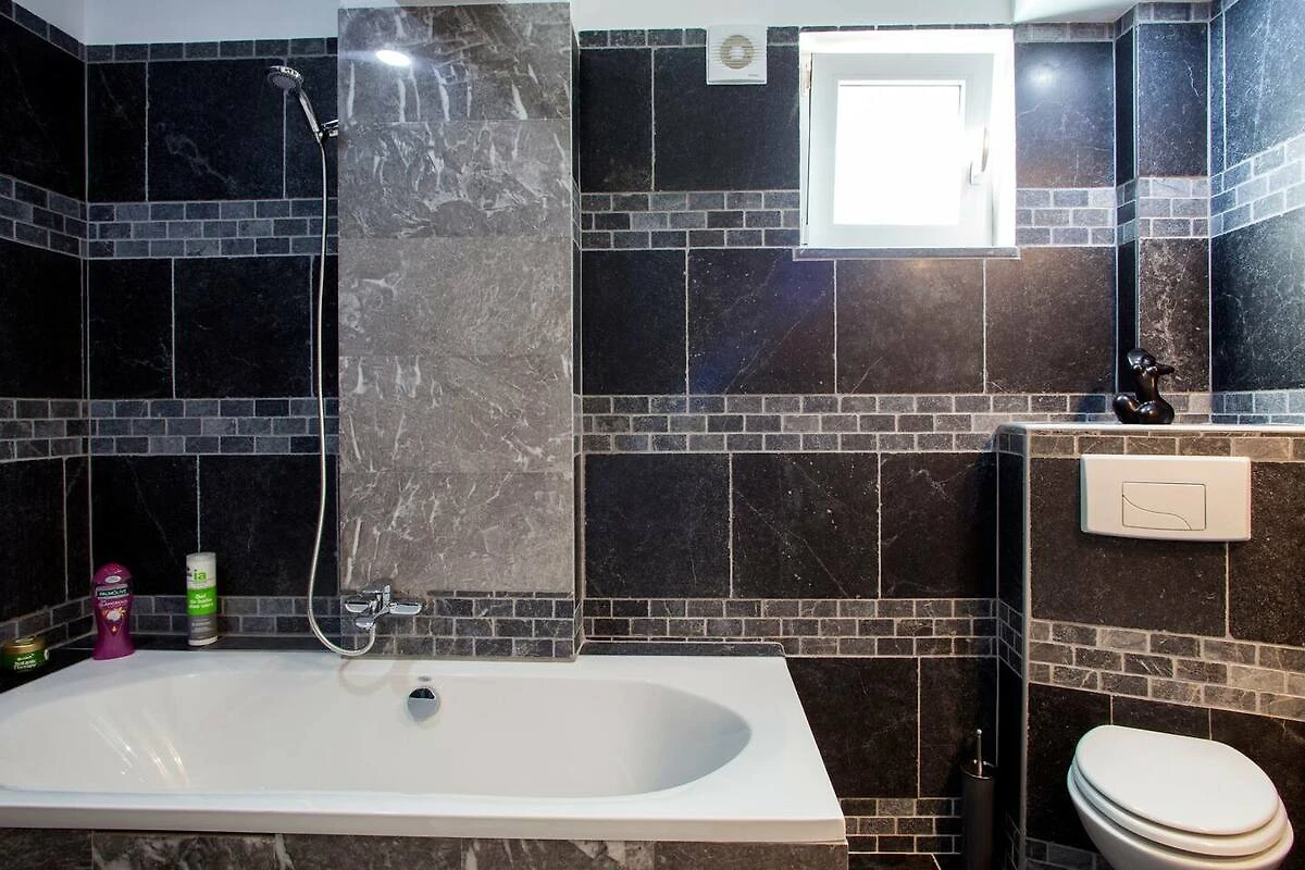 • Moderne Küche mit kompletter Ausstattung – Geschirrspüler – Cerankochfeld – Backofen – Kühl-Gefrierkombination – Kaffeemaschine – Entsafter – Alle Kochutensilien – Geschirr – Besteck – Glaswaren