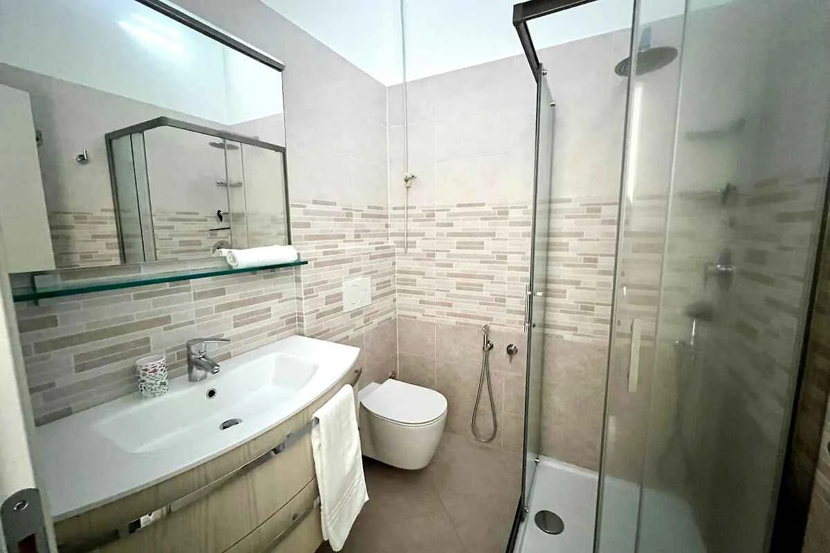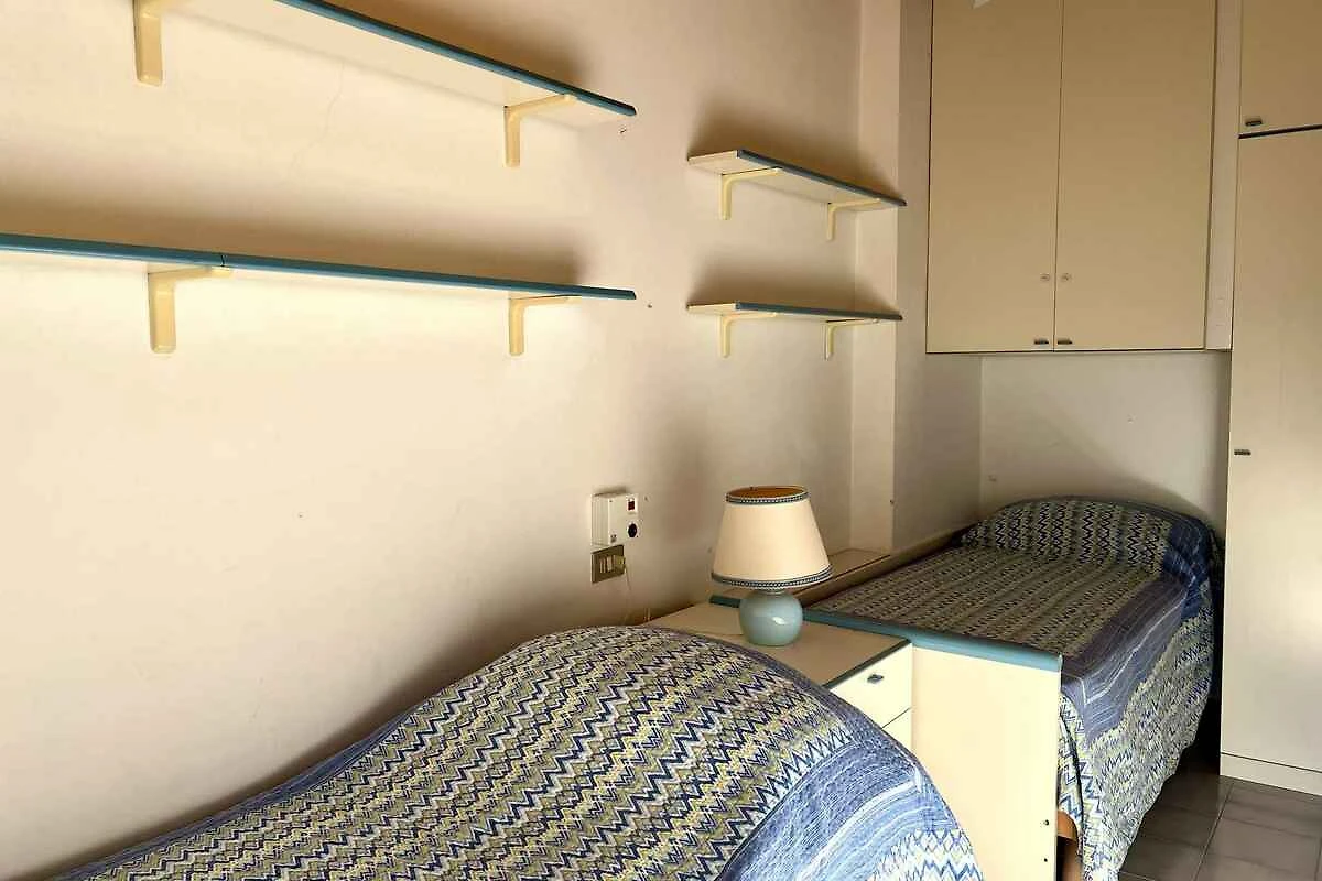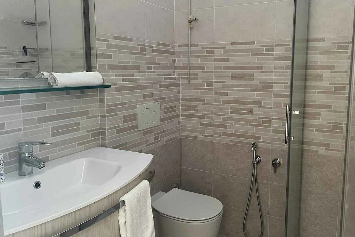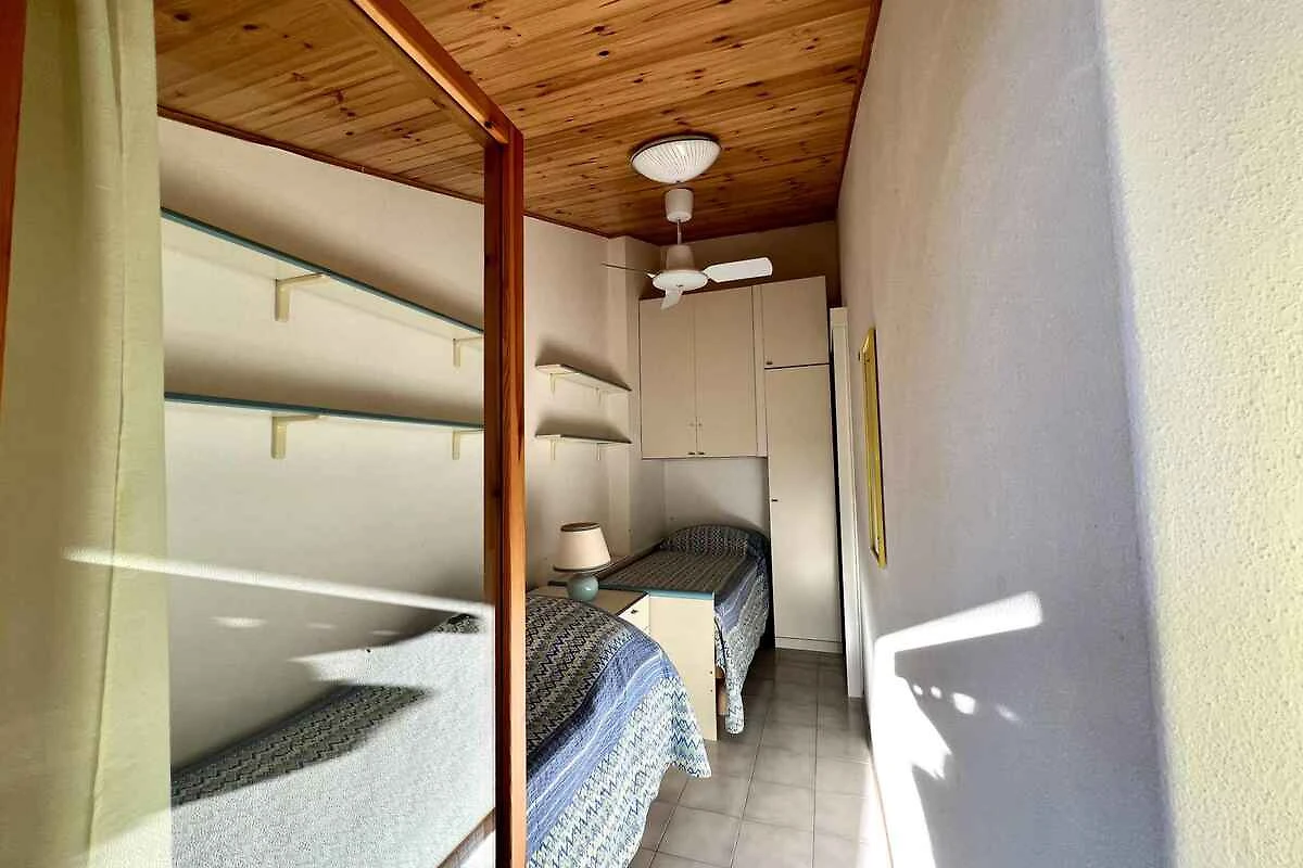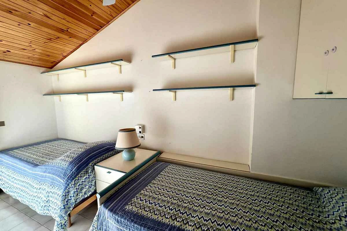 1. Etage: Schlafzimmer mit 3 Einzelbetten und Zugang zum Balkon. Schlafzimmer mit 1 Doppelbett und Zugang zum Balkon. Bad mit Dusche, 1 Waschbecken, WC und Föhn.