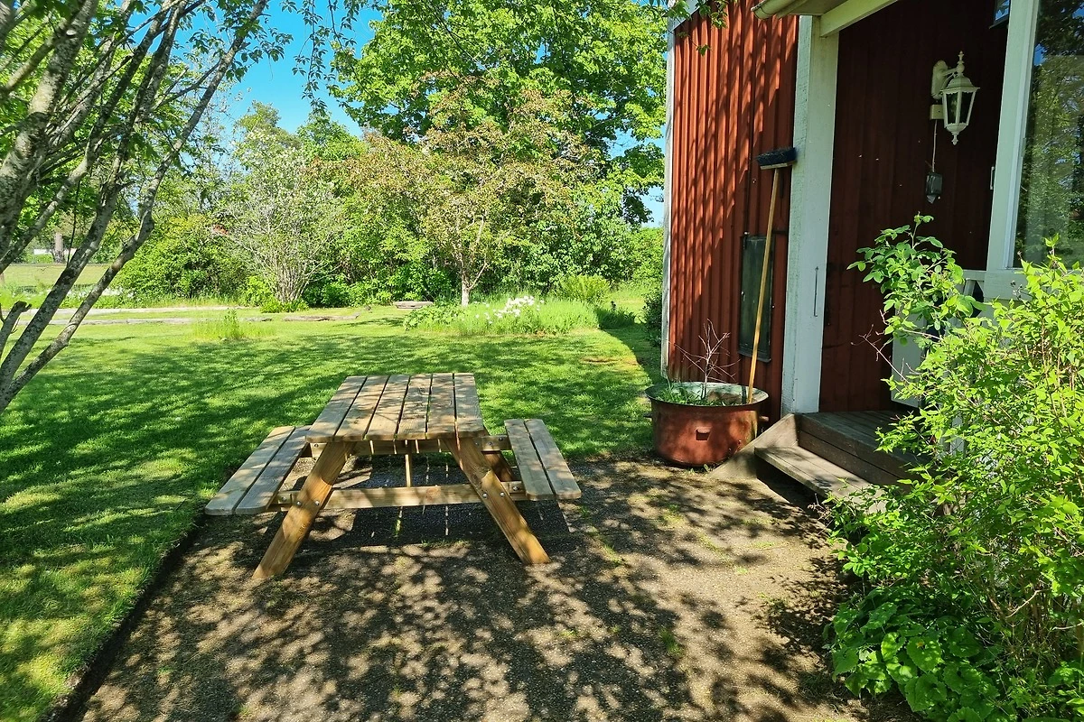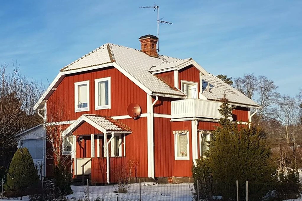 Das Haus befindet sich unweit vom See in der kleinen Ortschaft Hjältevad im schwedischen Samland.