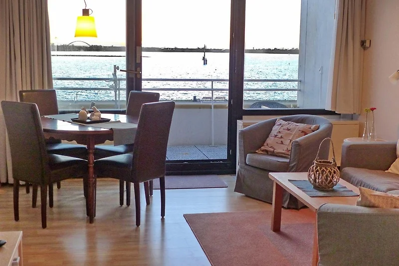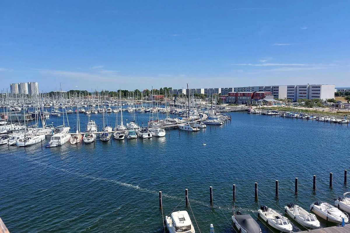 - Direkter Blick auf die Ostsee und die ein- und ausfahrenden Schiffe