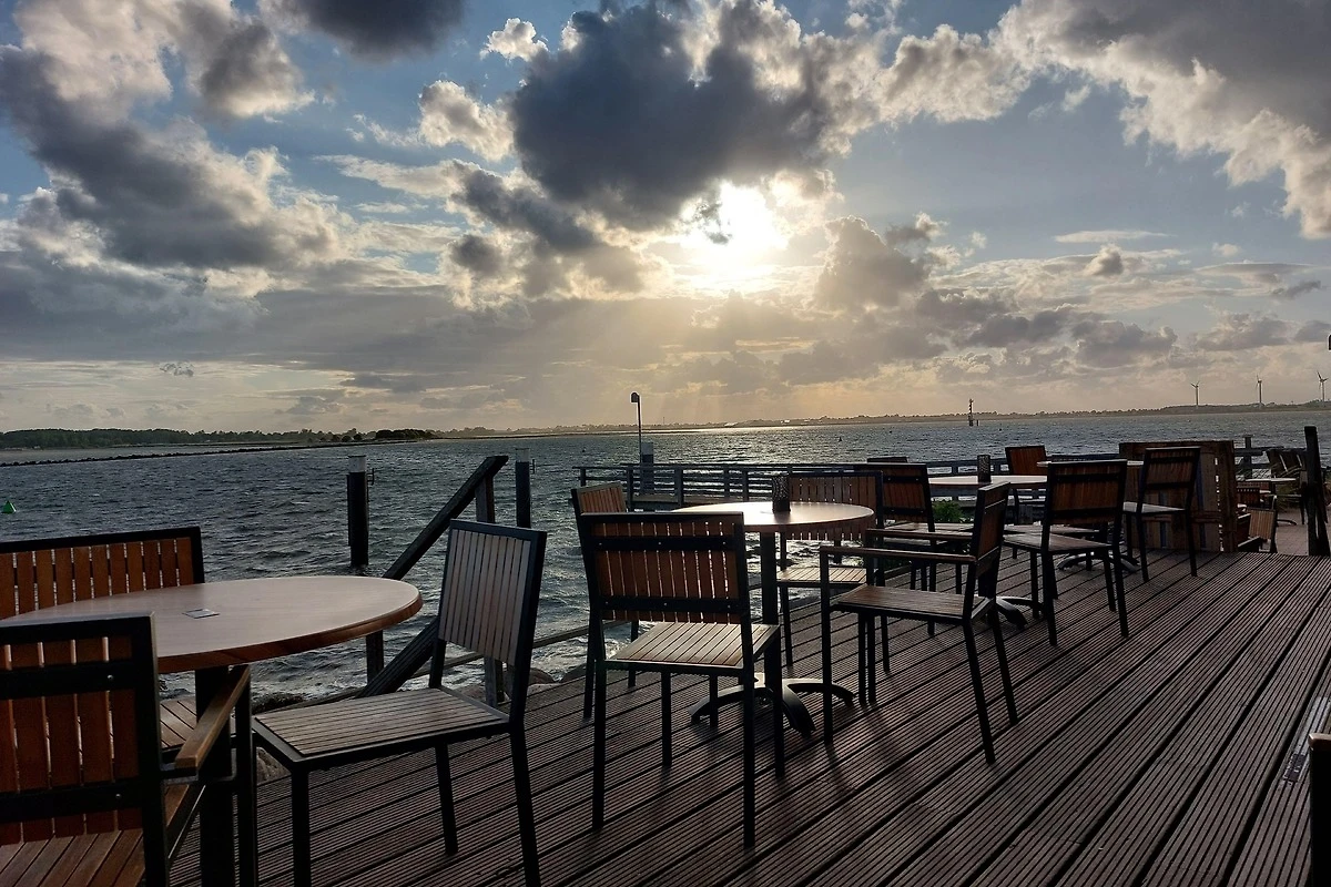Sie bietet einen direkten Blick auf die Ostsee und die ein- und ausfahrenden Boote und liegt am Ende einer Landzunge zwischen Ostsee und Binnensee.