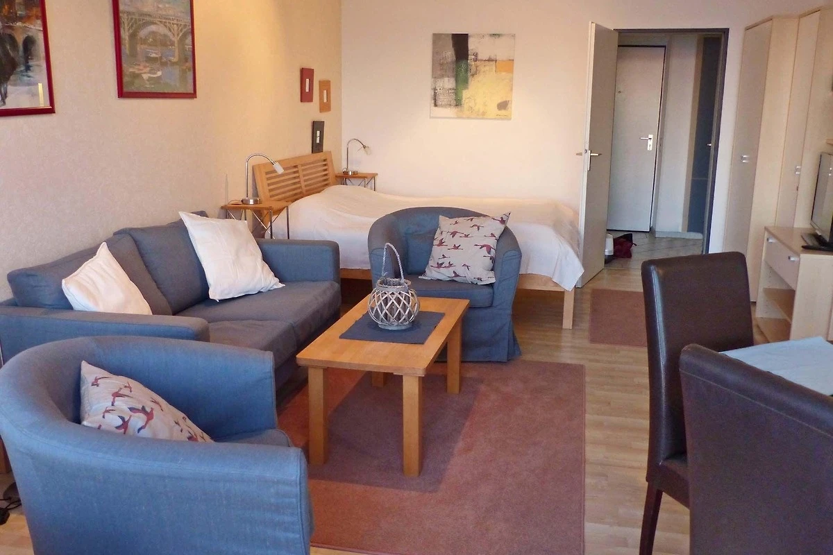 Die geschmackvoll eingerichtete Wohnung eignet sich für bis zu 2 Erwachsene und 2 Kinder oder 3 Erwachsene.