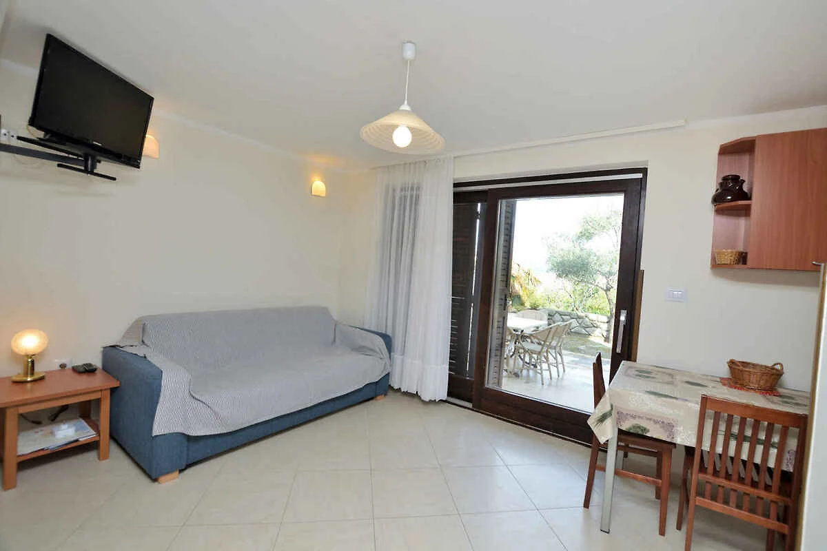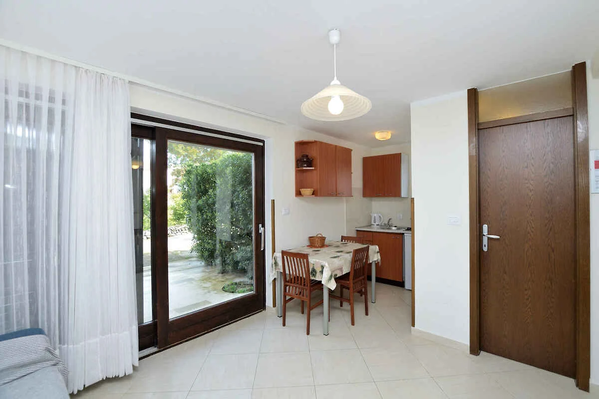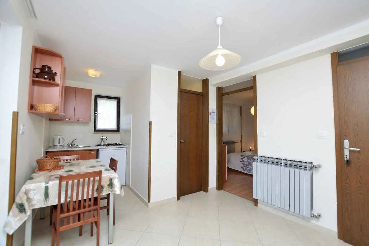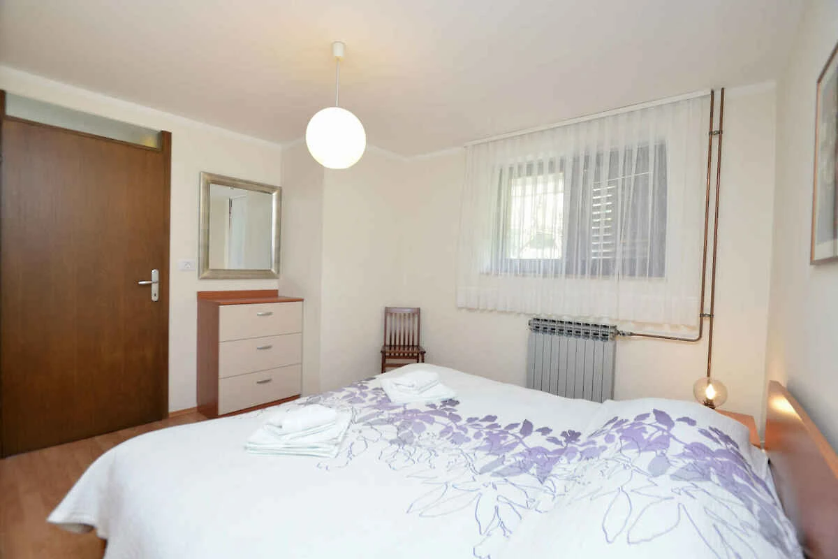 Cres. Die Ferienwohnung befindet sich auf einem geschlossenen Gartengrundstück mit Sträuchern und Bäumen, von einem Zaun begrenzt. Der Vermieter wohnt nicht im Haus oder auf dem Grundstück. Die Zufahrt erfolgt über eine Nebenstrasse (asphaltiert). Parkplatz (für 2 Pkws) auf dem Grundstück.