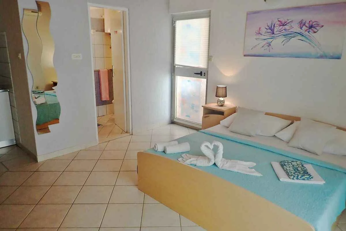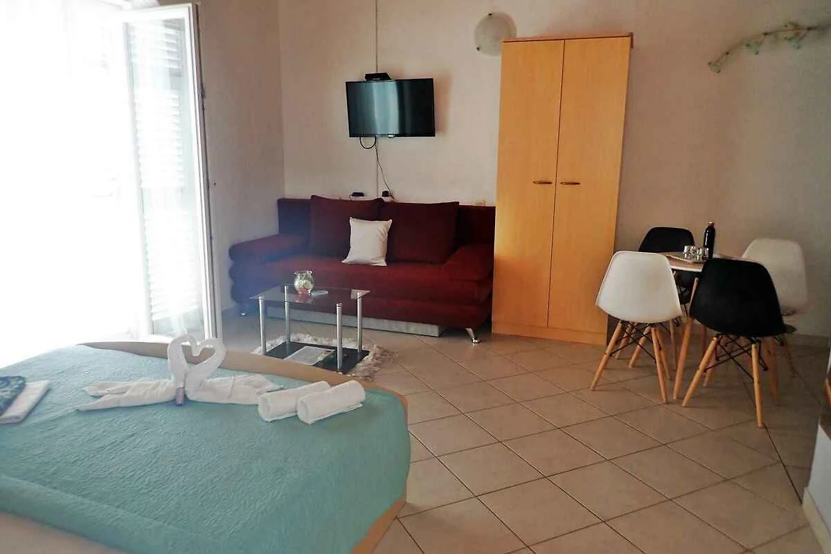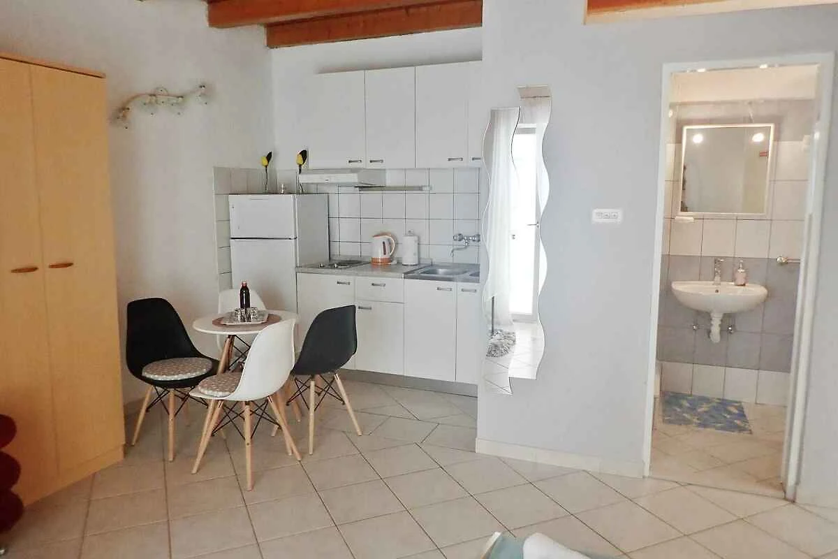 Das Studio befindet sich in einem Apartementhaus. Das Grundstück liegt am Ortsrand. Auch wegen des Ausblicks vom Grundstück auf das Meer ist das Domizil beliebt. Zur alleinigen Nutzung stehen zur Verfügung: Gartenmöbel.