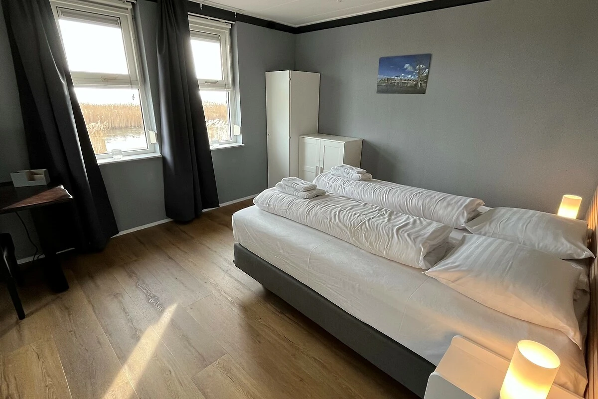 Willkommen in der Ferienvilla "The waterfront cottage" in Makkum, Südwest-Friesland, NL. Diese charmante Unterkunft bietet Platz für bis zu 4 Gäste, verteilt auf 2 Schlafzimmer mit Badezimmer und separatem Gäste-WC.
