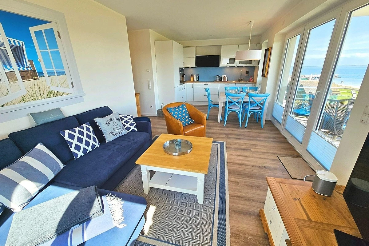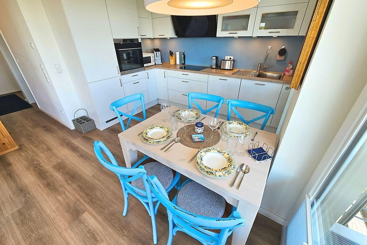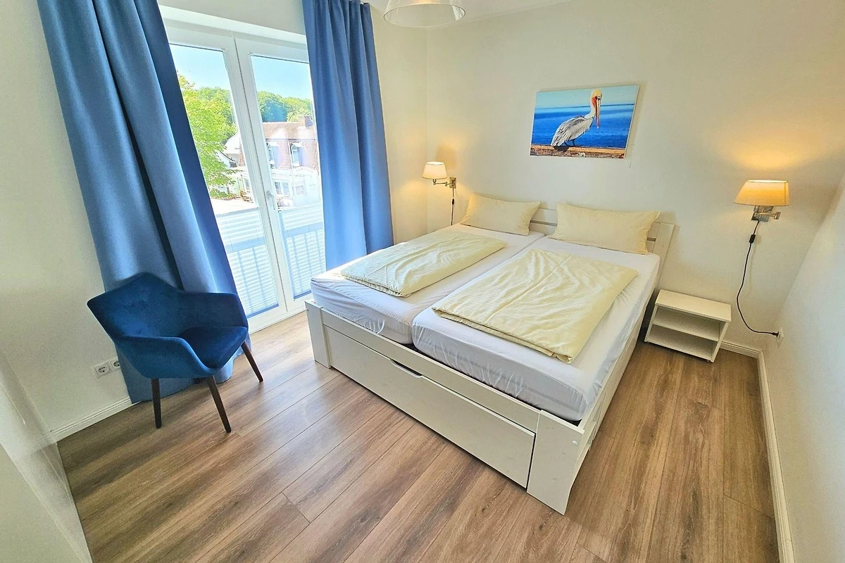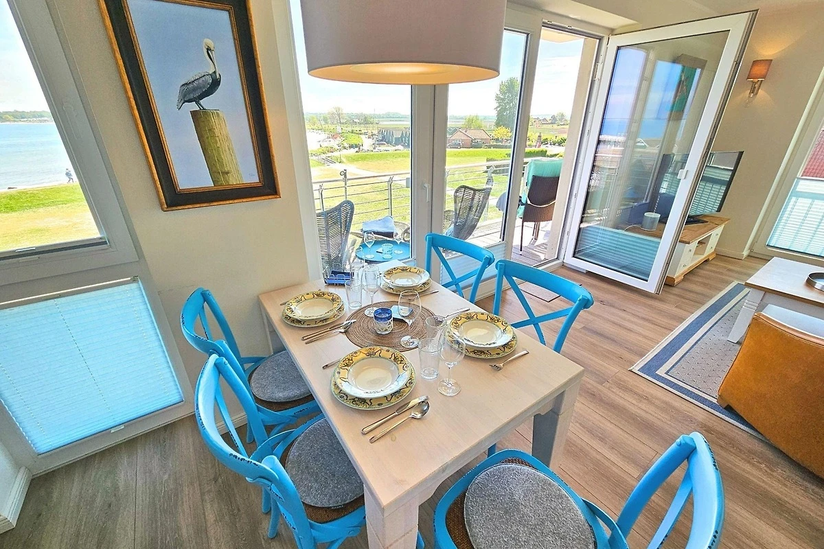 Die Ferienwohnung „Oase Pelikan“ in Hohwacht bietet auf 65 m² Platz für bis zu vier Personen. Sie zeichnet sich durch zwei Schlafzimmer, ein modernes Badezimmer und ein helles, grosszügiges Wohnzimmer aus. Die offene Küche ist umfassend ausgestattet mit einem Induktionsherd, Kühlschrank, Backofen, Mikrowelle und Spülmaschine sowie sämtlichen Küchenutensilien. Für Unterhaltung stehen eine HiFi-Anlage und ein 55 Zoll grosser Fernseher zur Verfügung. Ein überdachter Balkon mit Meerblick lädt zum Entspannen ein. Die Wohnung ist rauchfrei und sorgt mit Fussbodenheizung für ein angenehmes Raumklima. Zudem stehen ein Aufzug und ein privat zugänglicher Parkplatz zur Verfügung. Die Nähe zum Sandstrand (nur 10 Meter) und zu Freizeitaktivitäten sowie Einkaufsmöglichkeiten rundet das Angebot ab.