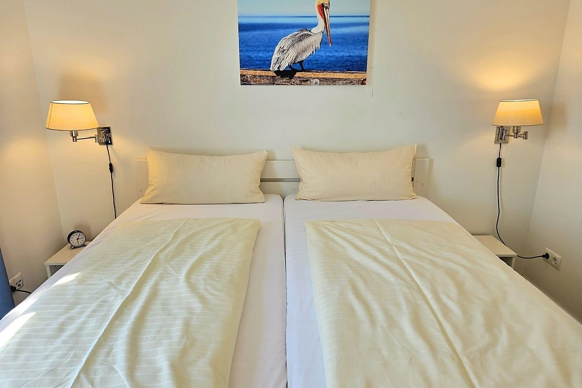 Die Ferienwohnung "Oase Pelikan" bietet Platz für bis zu vier Personen. Hinweise: Anreise zu vereinbaren, Schlüsselübergabe geregelt. Haustiere sind nicht erlaubt. Saisonabhängige Leistungen gelten. Gemeinschaftliche Ausstattung, wie Parkplatz und Aufzug, steht zur Verfügung.